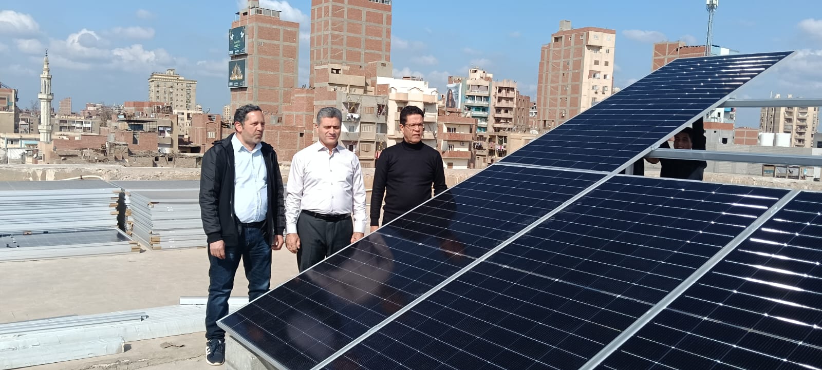 أجرى الدكتور ناصر الجيزاوي رئيس جامعة بنها ، جولة تفقدية لمرحلة تنفيذ محطة للطاقة الشمسية الكهروضوئية بمبنى إدارة الجامعة في ضوء سعي الجامعة لترشيد استهلاك الطاقة .