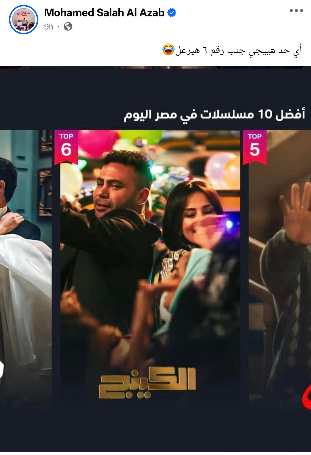 وكتب من خلال حسابه الرسمي عبر موقع التواصل الاجتماعي فيسبوك، قال: أي حد هيجي جنب رقم 6 هيزعل.