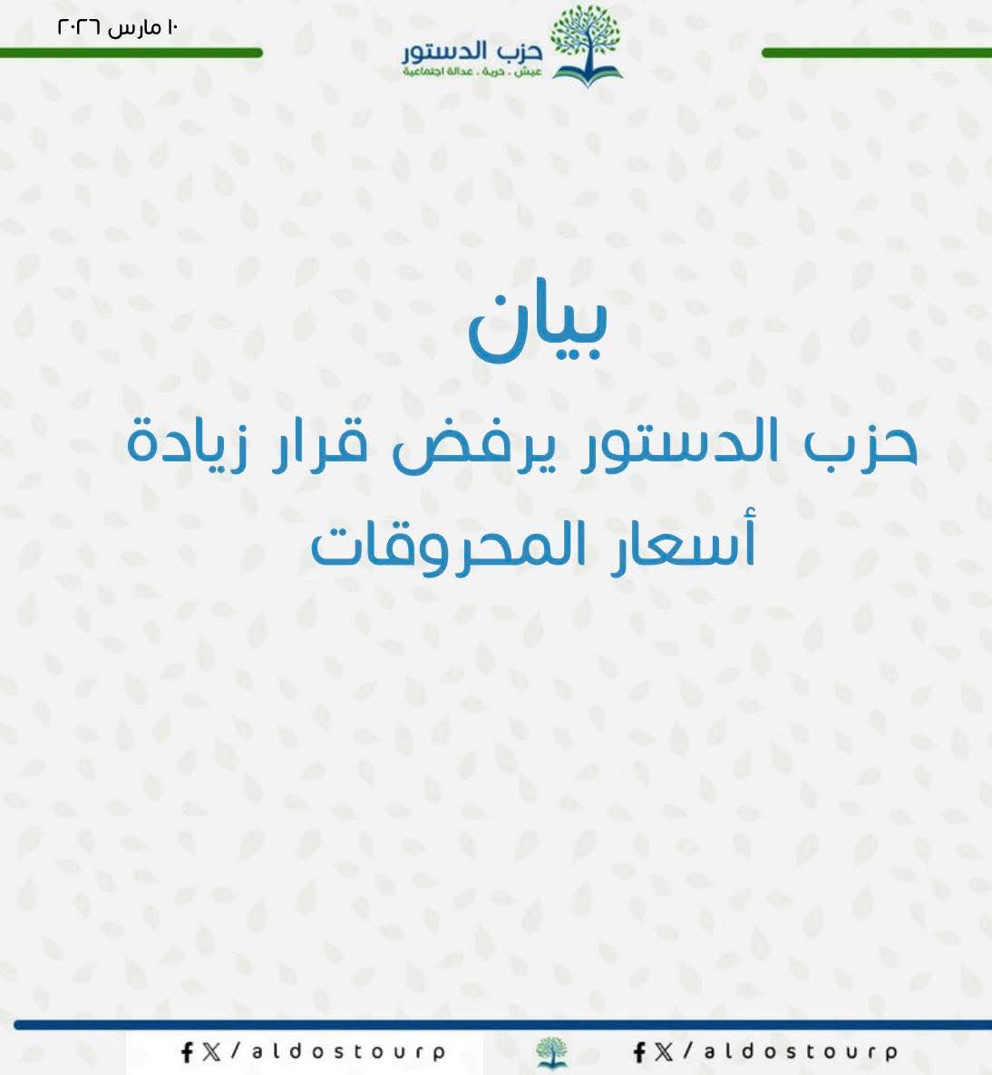 ويؤكد حزب الدستور أن استمرار هذه الحكومة بنفس السياسات الاقتصادية لا يبشر بتحسن ملموس في الأوضاع المعيشية للمواطنين، ولا يجوز أن يتحمل المواطن وحده تبعات هذا الفشل، في وقت تسعى فيه حكومات الدول إلى تخفيف أعباء مواطنيها.