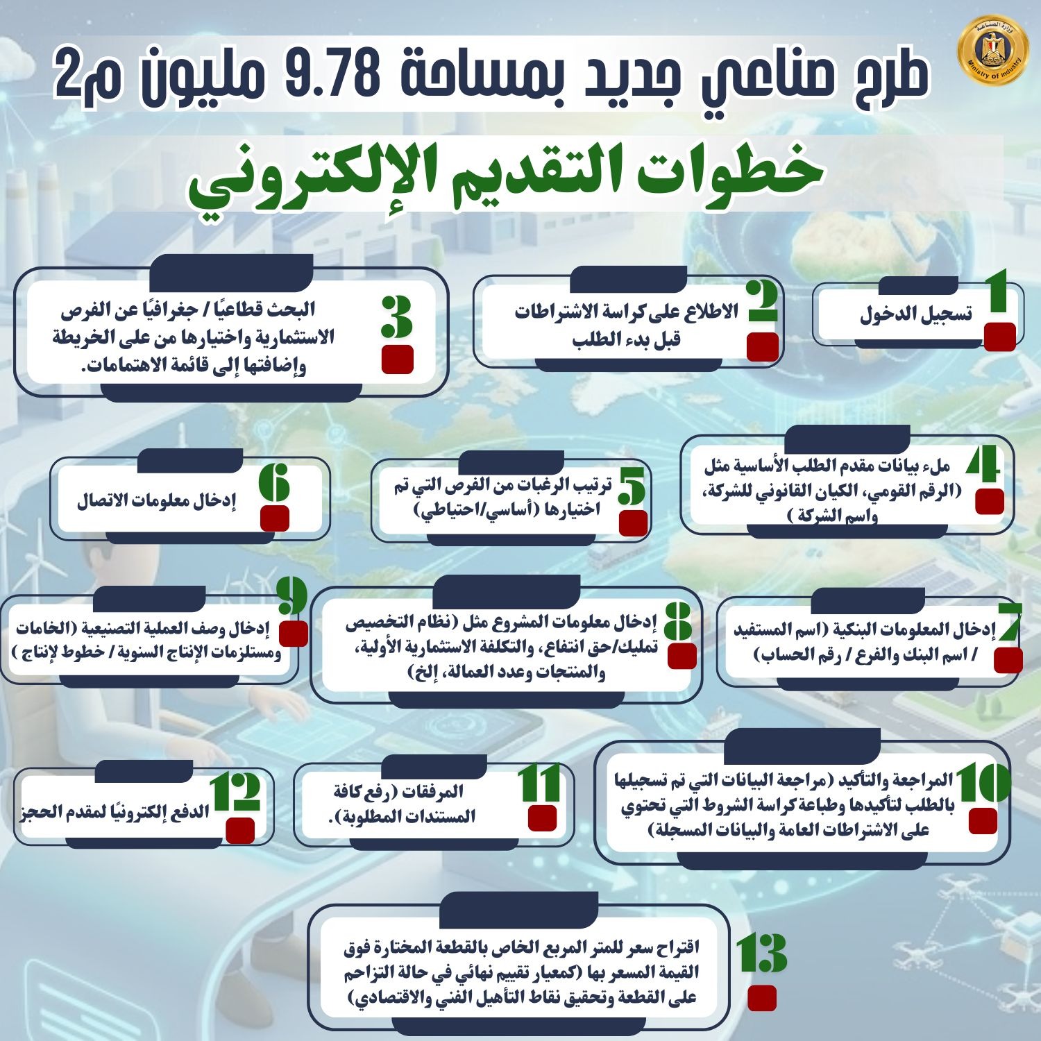 تفاصيل الطرح الثالث عشر للأراضي الصناعية المرفقة عبر منصة مصر الرقمية
