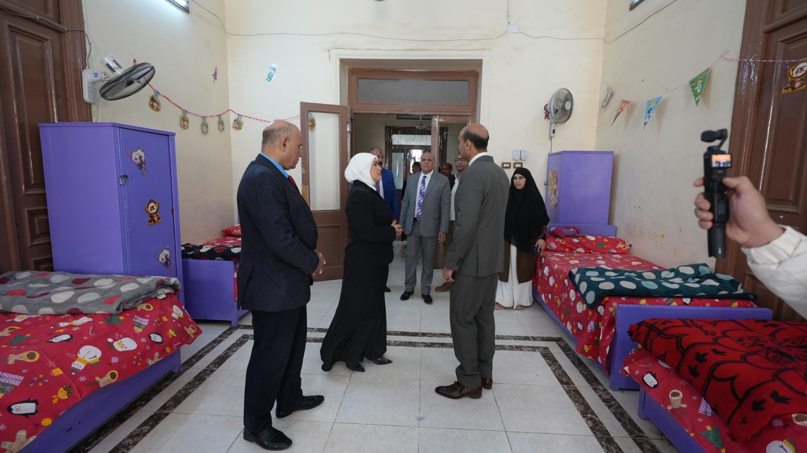 كما توجه المحافظ إلى دار الصفا لرعاية الفتيات، حيث قدم التهنئة والهدايا وسط أجواء من الفرحة، واطمأن من القائمين على الدار على توافر الإمكانيات اللازمة لتقديم رعاية متكاملة، موجهاً بضرورة الاستمرار في توفير بيئة آمنة وداعمة تلبي احتياجات الأطفال والفتيات. وشهد خلال الزيارة عددًا من الفقرات الفنية والغنائية، كما تفقد غرف الإقامة والمرافق الخدمية، من بينها المطبخ والمخزن ومشغل الخياطة.