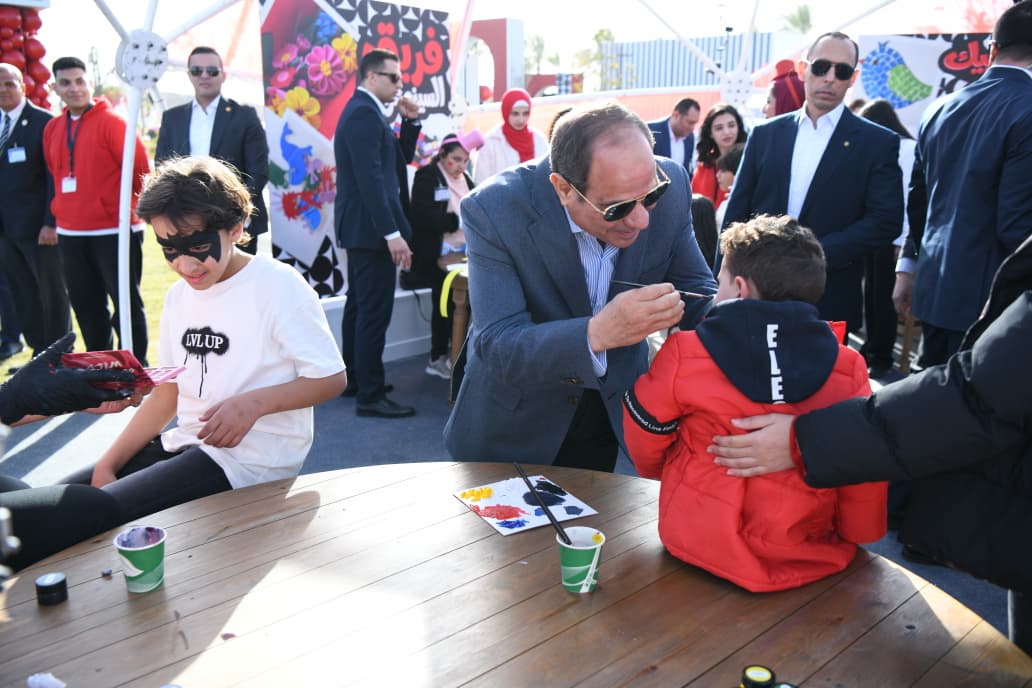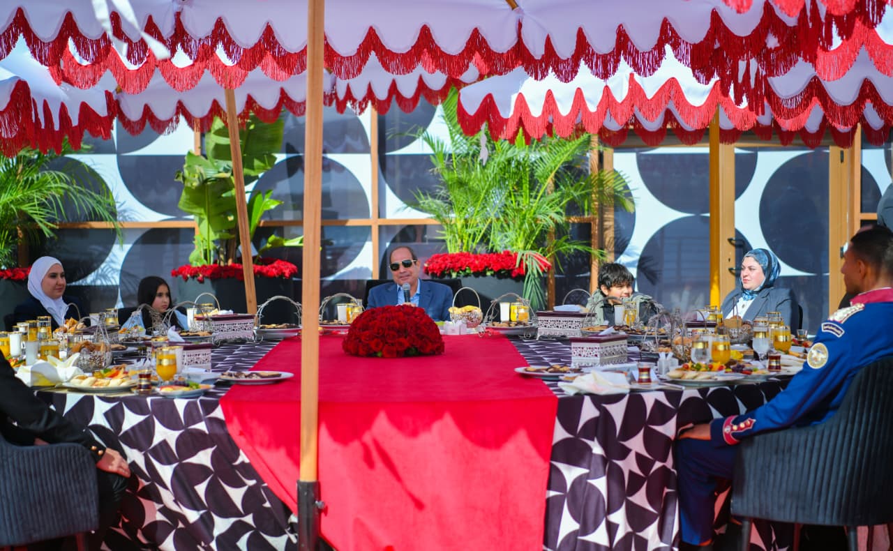 وأشار المتحدث الرسمي إلى أن الرئيس قام عقب ذلك بتناول الإفطار مع الحضور؛ وألقى كلمة قال فيها:" عايز أكلمكم عنكم… المصريين من الشباب والأسر والبراعم .. في ٢٠١٢ مصر كانت بتعيش أيام وأحوال صعبة … بكلمكم عنكم علشان أنتم بالنسبة لنا مهمين… وعلشان نأكد أن إحنا لا ننسى أبدا الجميل الكبير من الأسر التي قدمت شهداء ومصابي مصر في الفترة الصعبة … هقول الكلام كإنسان … وليس كمسئول عاش الفترة الصعبة دي … كانت فيه ناس كانت عايز تهد … اللي بيهد ما يعرفش يبني … واللي بيخرب ميعرفش يبني … فترة صعبة كل يوم أحداث وعمليات إرهابية، حرب صعبة، استمرّت ١٠ سنوات ثمنها أولاد مصر… هم اللي خلونا قاعدين كده بفضل الله وبفضل تضحياتهم
