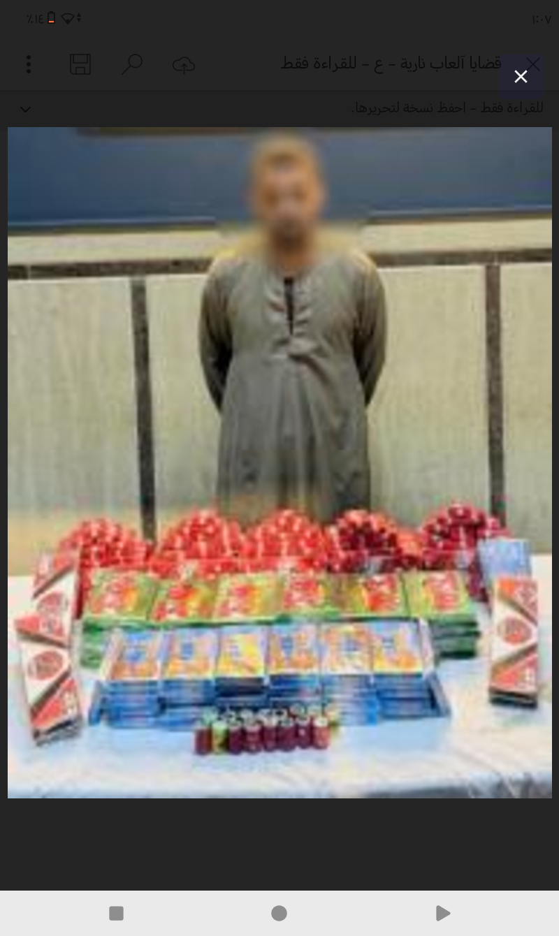 استمراراً لجهود أجهزة وزارة الداخلية لمكافحة جرائم الاتجار فى الألعاب النارية وحيازتها وترويجها، وتكثيف الجهود لملاحقة وضبط القائمين على تصنيعها.