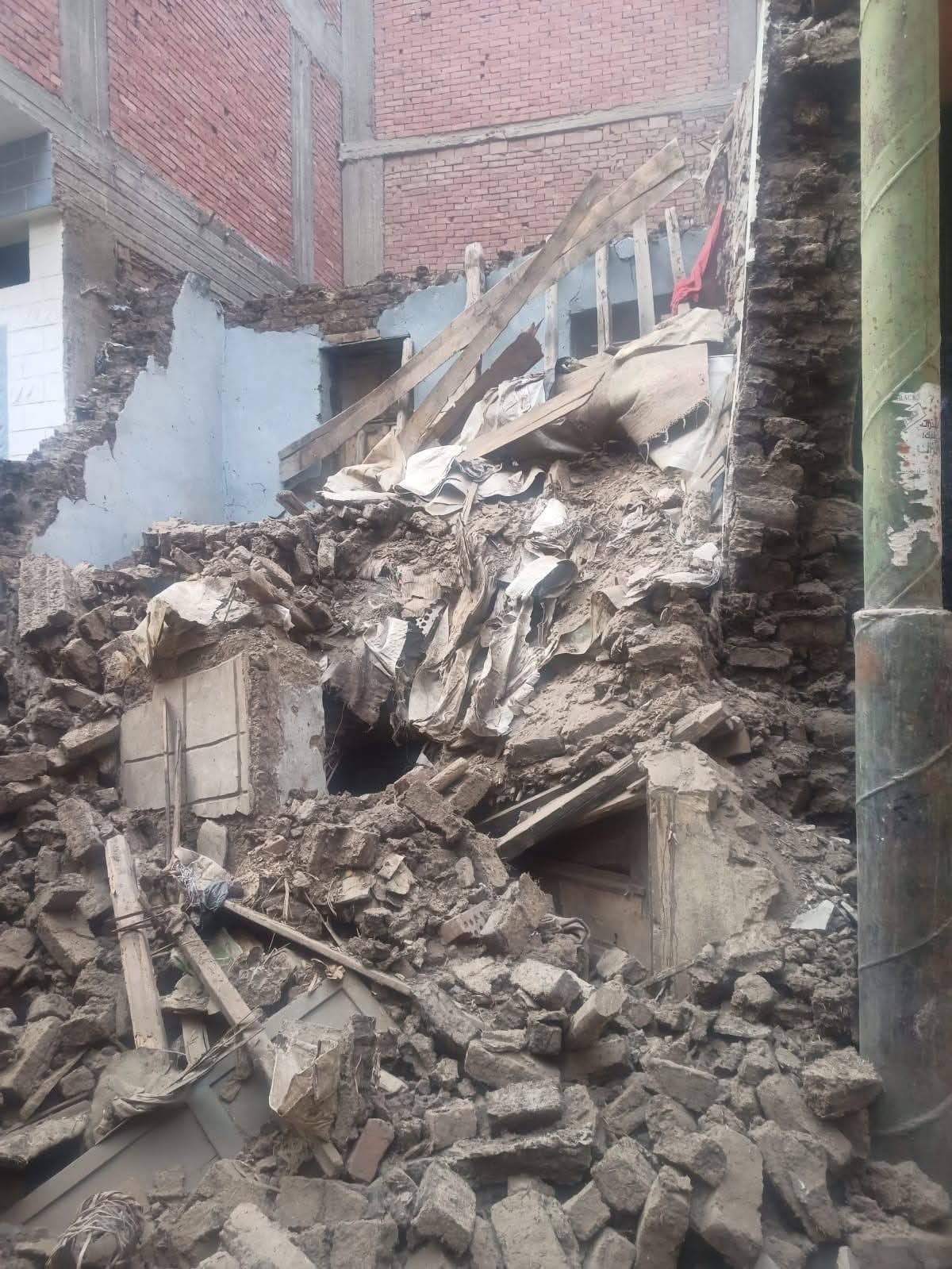 بالصور.. تصدع منزل قديم في طوخ بالقليوبية وإجراءات عاجلة لحماية المارة