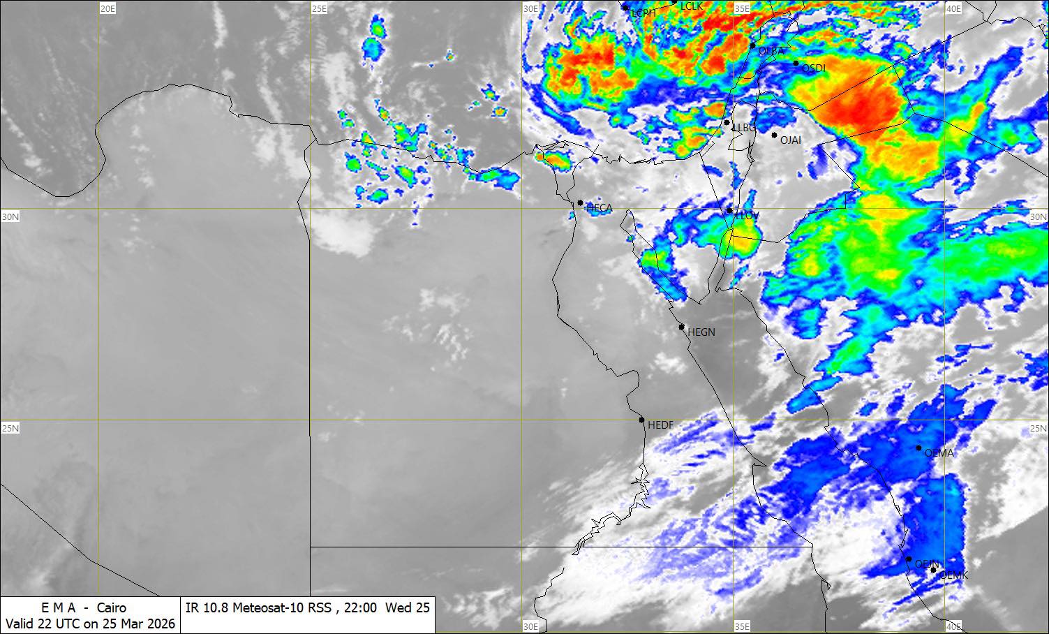 وكتبت الهيئة العامة الأرصاد الجوية المصرية عبرالصفحة على موقع التواصل الاجتماعي فيسبوك:"متابعينا الكرام ؛استمرار تدهور الرؤية الأفقية على مناطق من جنوب الصعيد نتيجة نشاط الرياح المثير للرمال والأتربة ".