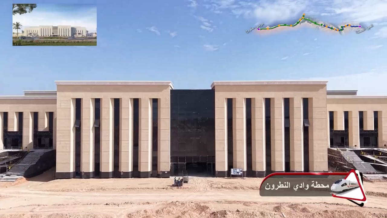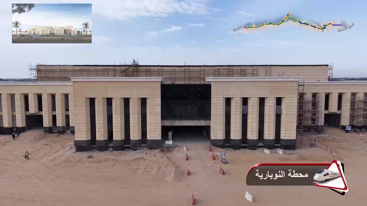 1. يتقدم العمل في أعمال تركيب القضبان وتشطيبات المحطات بمشروع الخط الأول من شبكة القطار الكهربائي السريع (السخنة/العلمين/مطروح)