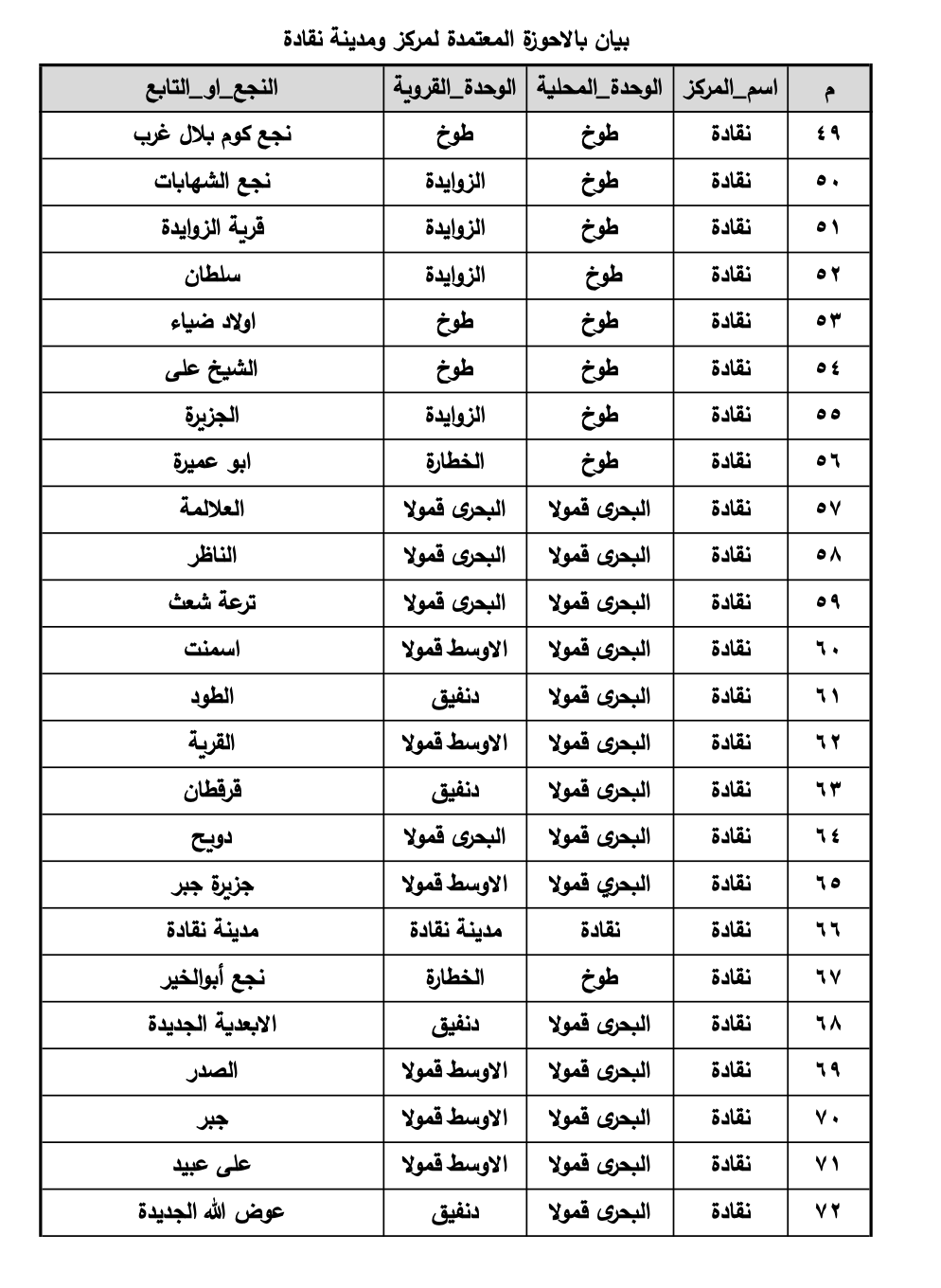 خريطة القرى والنجوع المعتمدة بمركز نقادة