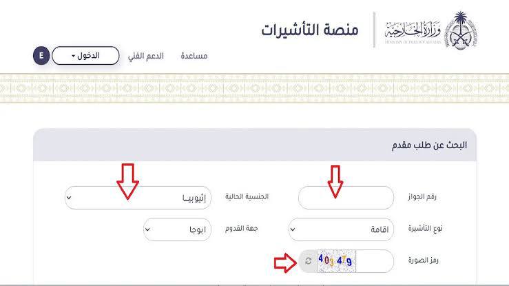 • إدخال رقم التأشيرة أو رقم الطلب