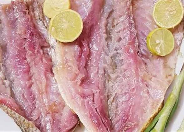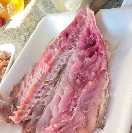 ـ لحم السمكة من الداخل يكون أحمر زهري (وردي) أو أحمر زاهي، وليس بنياً داكناً أو أسود.