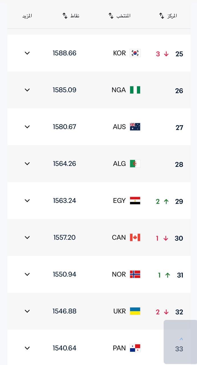 وقفز منتخب مصر من المركز ال31 في التصنيف العالمي إلي المركز ال29 بعد فوزه برباعية نظيفة علي منتخب السعودية في المباراة التي أقيمت بمدينة جدة مساء الجمعة الماضي استعدادا لكأس العالم.