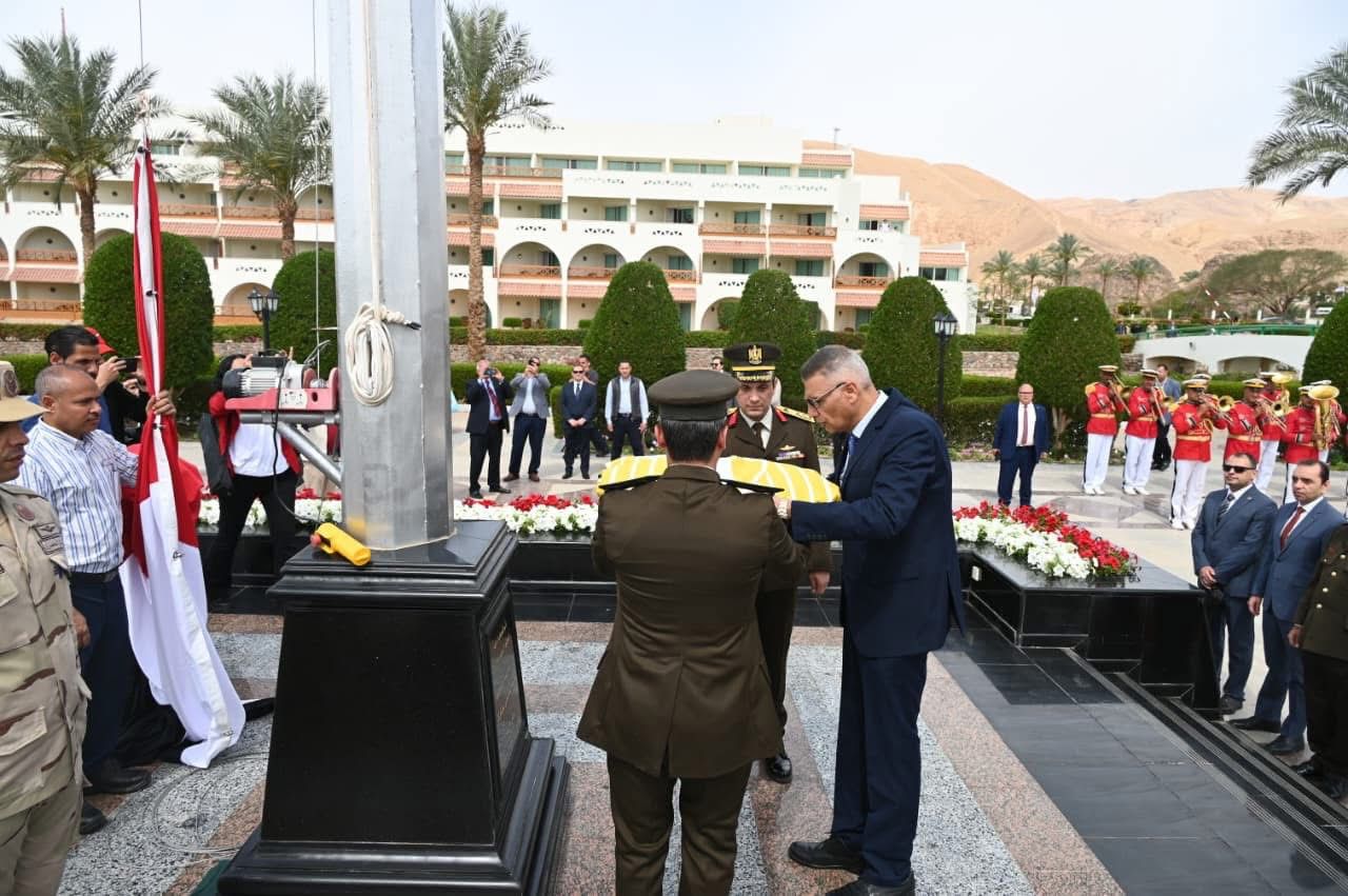 محافظ جنوب سيناء يرفع العلم بساحة طابا احتفالًا بالعيد القومي الـ37 للمحافظة