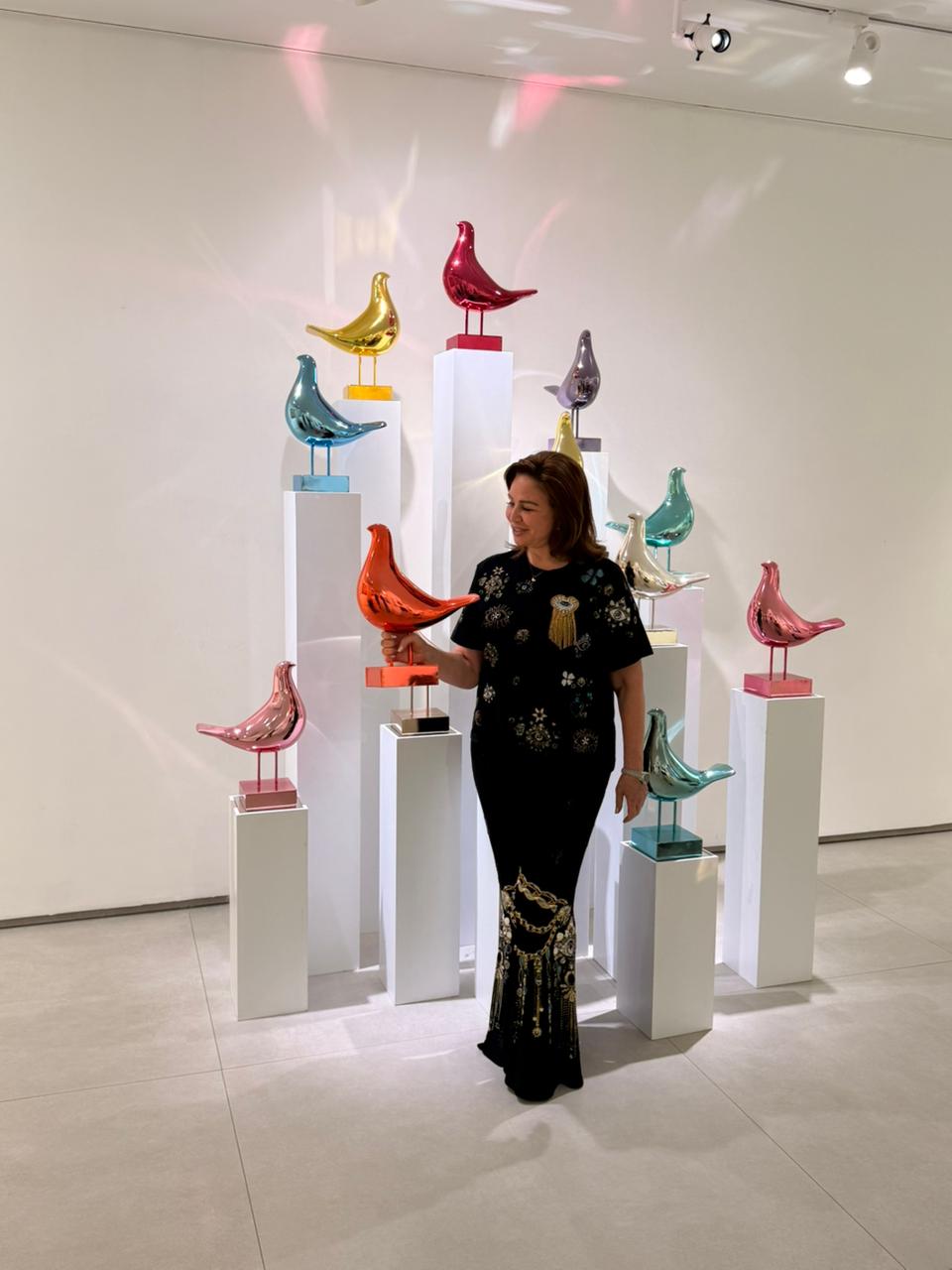 وخلال الزيارة، لفتت إلهام شاهين الأنظار بإطلالة أنيقة باللون الأسود، عكست ذوقها الفني وتناسقت مع أجواء المعرض، حيث حرصت على التفاعل مع الأعمال والتقاط الصور داخل القاعة.