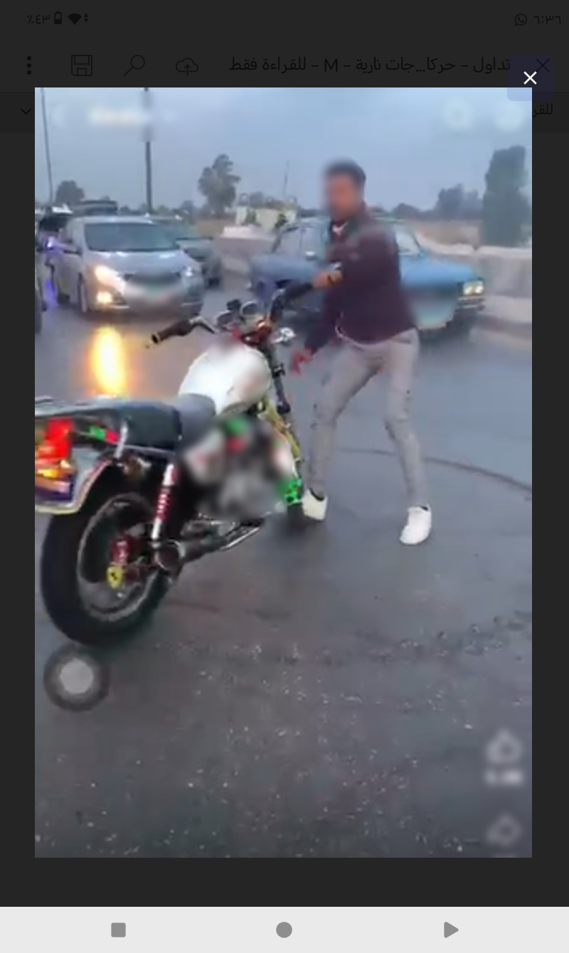 فى إطار كشف ملابسات مقطع فيديو تم تداوله بمواقع التواصل الاجتماعى تضمن قيام قائد دراجة نارية بأداء حركات استعراضية معرضاً حياته والمواطنين للخطر بالشرقية.