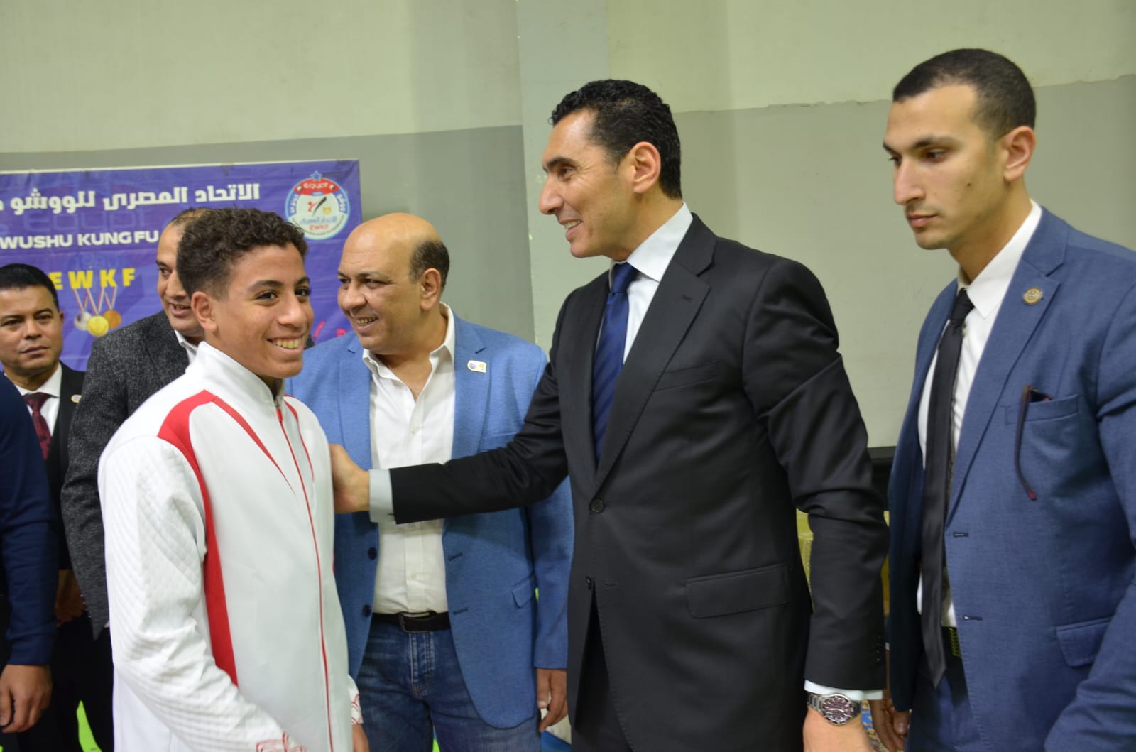 والتقى وزير الشباب والرياضة بمجموعة من لاعبي منتخب الووشو كونغ فو الذين رفعوا علم مصر عاليا، ومنهم: البطل عمر محمد فتحي صاحب الميدالية الذهبية والبطل ياسين ناصر صاحب الميدالية البرونزية والبطلة رحاب عثمان صاحبة الميدالية البرونزية والكابتن أشرف خطاب مدرب المنتخب الوطني، تقديراً لجهوده الفنية الكبيرة.