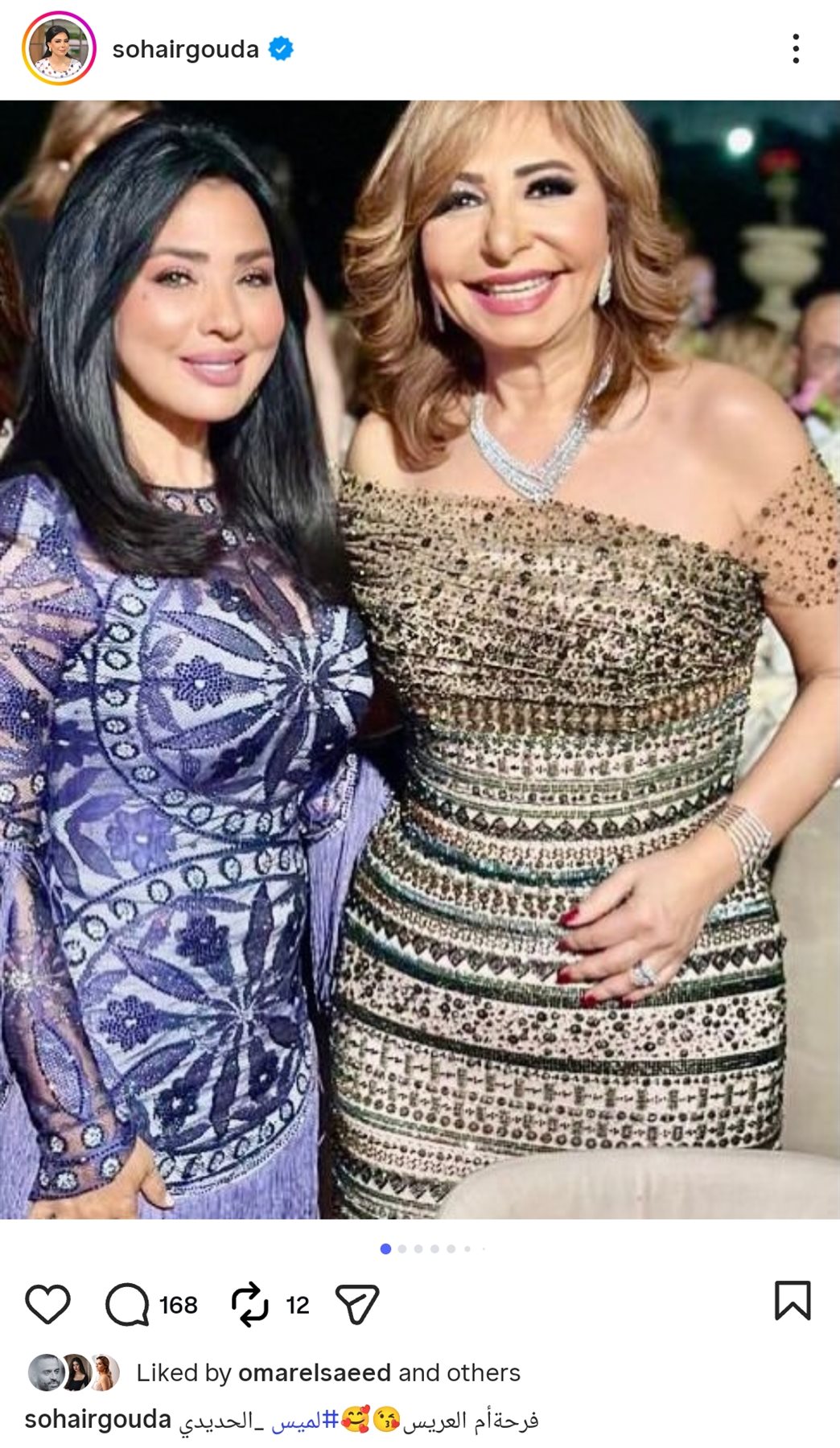 وشاركت سهير جودة جمهورها صورا من حفل الخطوبة، من خلال حسابها الرسمي عبر موقع تبادل الصور والفيديوهات القصيرة إنستجرام، وأرفقتها بتهنئة لصديقتها لميس الحديدي، وكتبت: فرحة أم العريس.. لميس الحديدي.