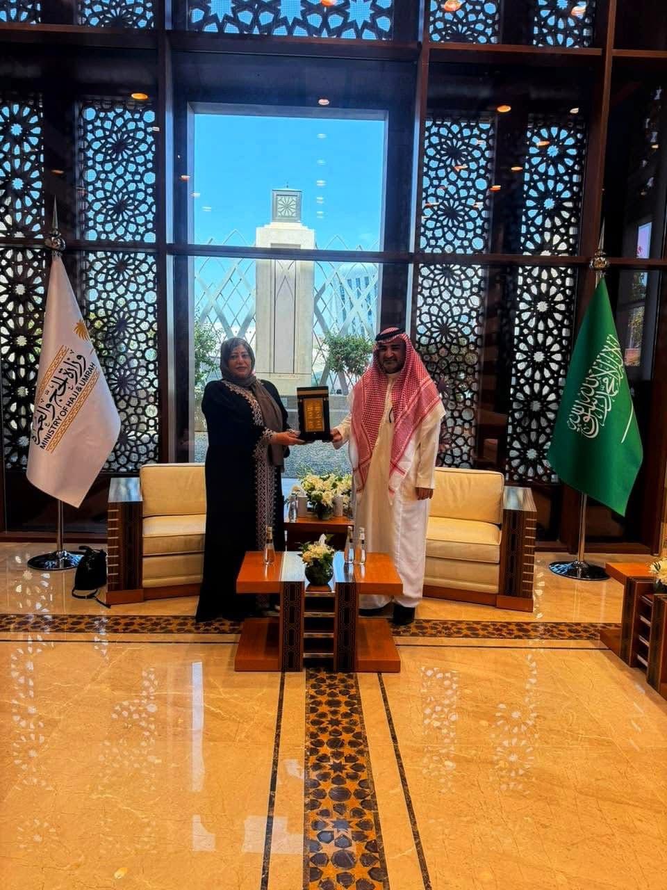 التقت سامية سامي مساعد وزير السياحة والآثار لشئون شركات السياحة ورئيس اللجنة العليا للحج والعمرة، مع الدكتور الحسن المناخرة مساعد وزير الحج والعمرة بالمملكة العربية السعودية، وذلك على هامش مشاركتها في أعمال منتدى "العمرة والزيارة" الذي تم تنظيمه بالمدينة المنورة.
