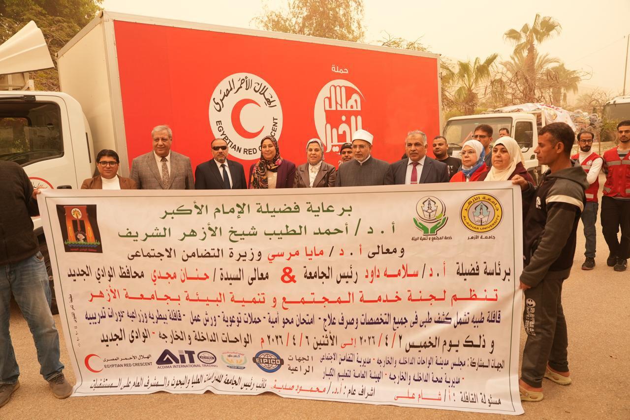 الهلال الأحمر المصري وجامعة الأزهر يطلقان قافلة تنموية وطبية بالوادي الجديد
