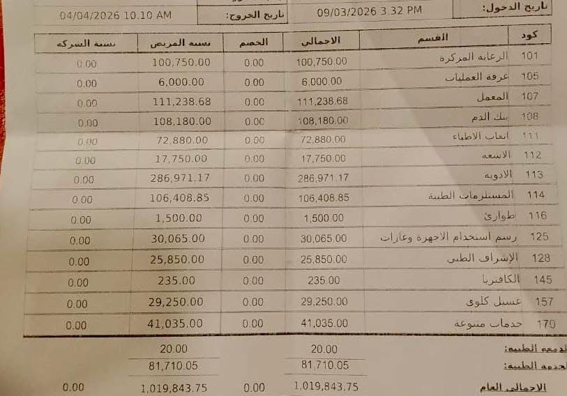 وتابعت: ليه بكتب شعور خاص جداً هنا ؟علشان مش قادرة اتغاضي عن مناهدة و تليفونات و خناقات طول اليوم علشان المستشفي ترضي ان جثمانه يتدفن لوجود جزء من المبلغ متدفعش لما طلبنا الفاتورة ، اتصدمت !الاسعار ديه للخدمة الطبية المقدمة مش منطقية أبداً الغياب الكبير للرقابة من وزارة الصحة علي الخدمات الطبية المقدمة في المستشفيات الخاصة وضع خاطيء لازم يتغير لازم يكون فيه هامش منطقي للتسعير و سقف لكل خدمة طبية مقدمة ورقابة علي ده.
