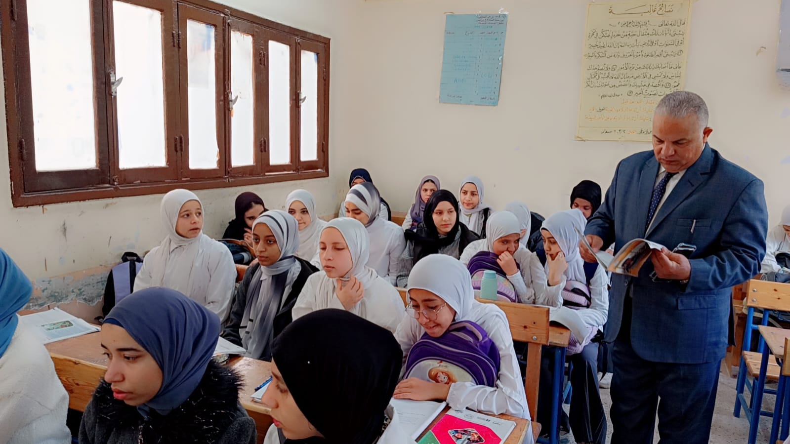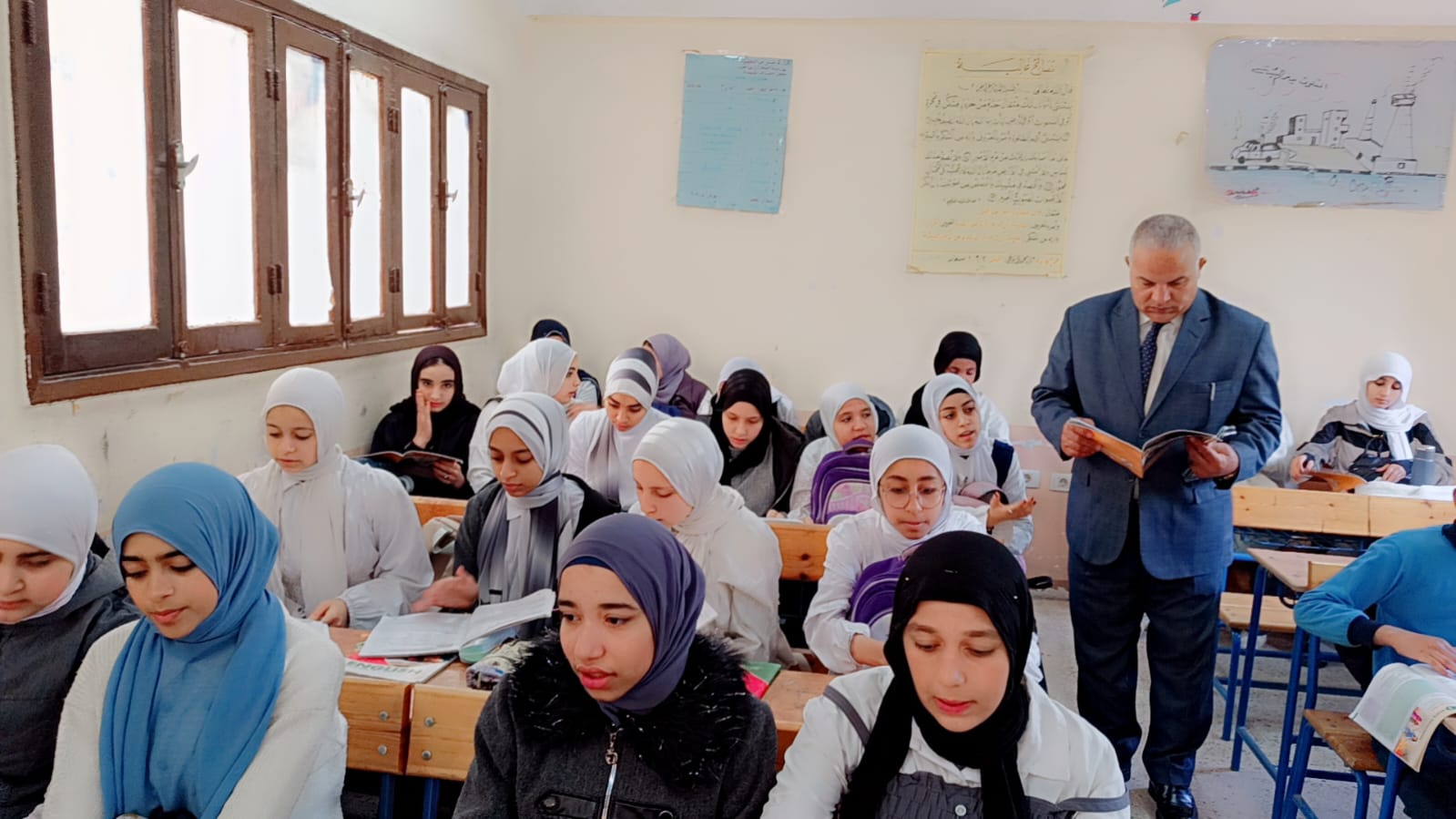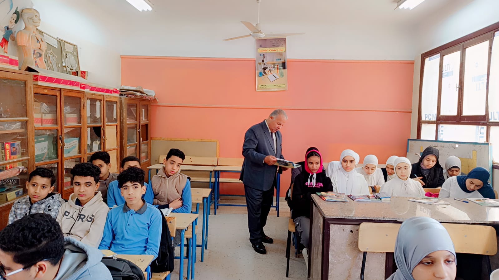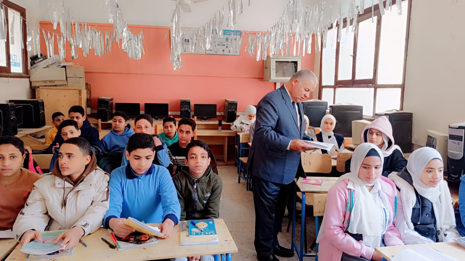 قام وكيل الوزارة بتفقد عدد من الفصول الدراسية بالمدرسة حيث تابع سير العملية التعليمية داخل الصف الثاني الإعدادي في مواد العلوم واللغة الإنجليزية واللغة العربية وحرص على التأكد من التزام المعلمين بشرح المناهج وفق الخطة الزمنية المحددة بما يضمن تحقيق الاستفادة الكاملة للطلاب.