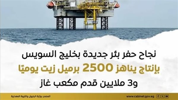 2500 برميل زيت و3 ملايين قدم مكعب غاز.. تفاصيل اكتشاف بئر جديدة بخليج السويس