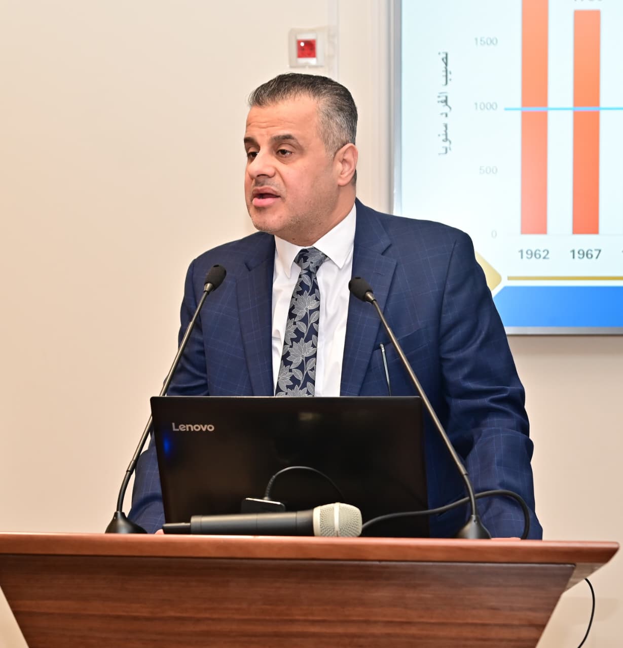 وقام الدكتور سويلم بتقديم عرض تقديمي يستعرض أهم ملامح ومحاور الجيل الثاني لمنظومة المياه في مصر 2.0، حيث استعرض سيادته الموقف المائي الحالي، حيث يبلغ الطلب على المياه في مصر ٨٨.٥٥٠ مليار متر مكعب من المياه سنويًا، في حين تُقدّر مصادر المياه المتجددة في مصر بـ ٦٥.٣٥٠ مليار متر مكعب سنويًا، مع إعادة استخدام ٢٣.٢٠ مليار متر مكعب سنويًا من المياه لسد الفجوة بين الطلب على المياه ومصادر المياه المتجددة. كما أشار سيادته إلى أنه، وعلى الرغم من تراجع صافي النمو السكاني من ١.٩٥٠ مليون نسمة عام ٢٠١١ إلى ١.٢٨٠ مليون نسمة عام ٢٠٢٤، فإن الزيادة السكانية في مصر لا تزال تؤدي لتزايد الفجوة بين الطلب على المياه والمتاح منها، وتراجع نصيب الفرد من المياه من ٢٠٠٠ متر مكعب سنويًا في عام ١٩٦٢، ليقل عن خط الفقر المائي (١٠٠٠ متر مكعب سنويًا) في التسعينيات، وصولًا إلى حوالي ٥٠٠ متر مكعب سنويًا في الوقت الحالي.
