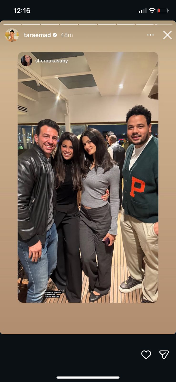 وحضر حفل عيد الميلاد الفنانة إيمي سمير غانم وزوجها حسن الرداد وشقيقتها دنيا سمير غانم وزوجها الإعلامي رامي رضوان، بالإضافة إلى عدد من النجوم في الوسط الفني أبرزهم الفنان هشام ماجد، مصطفى غريب، تارا عماد، السبكي، شريف رمزي، آن الرفاعي، وعدد آخر من الأصدقاء من خارج الوسط الفني.