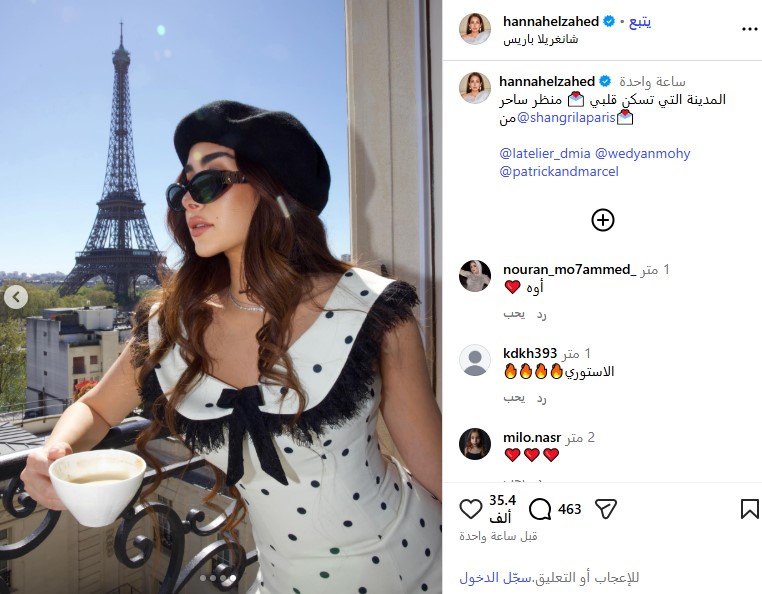 لفتت الفنانة هنا الزاهد أنظار جمهورها ومتابعيها، وذلك في أحدث ظهور لها خلال قضاء أجازتها في باريس.