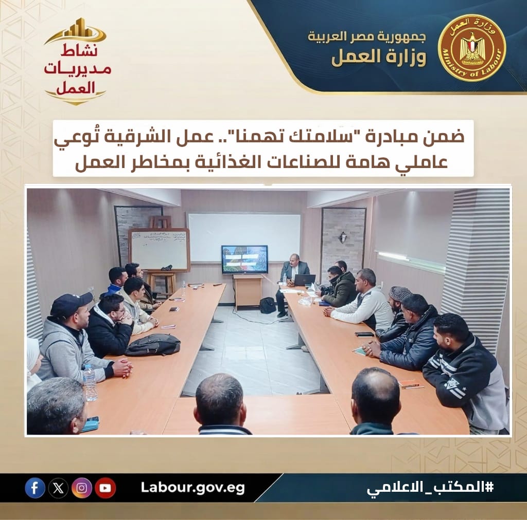 10-ضمن مبادرة "سلامتك تهمنا".. "عمل الشرقية" تُوعي عمال هامة للصناعات الغذائية بمخاطر العمل وقانون العمل الجديد