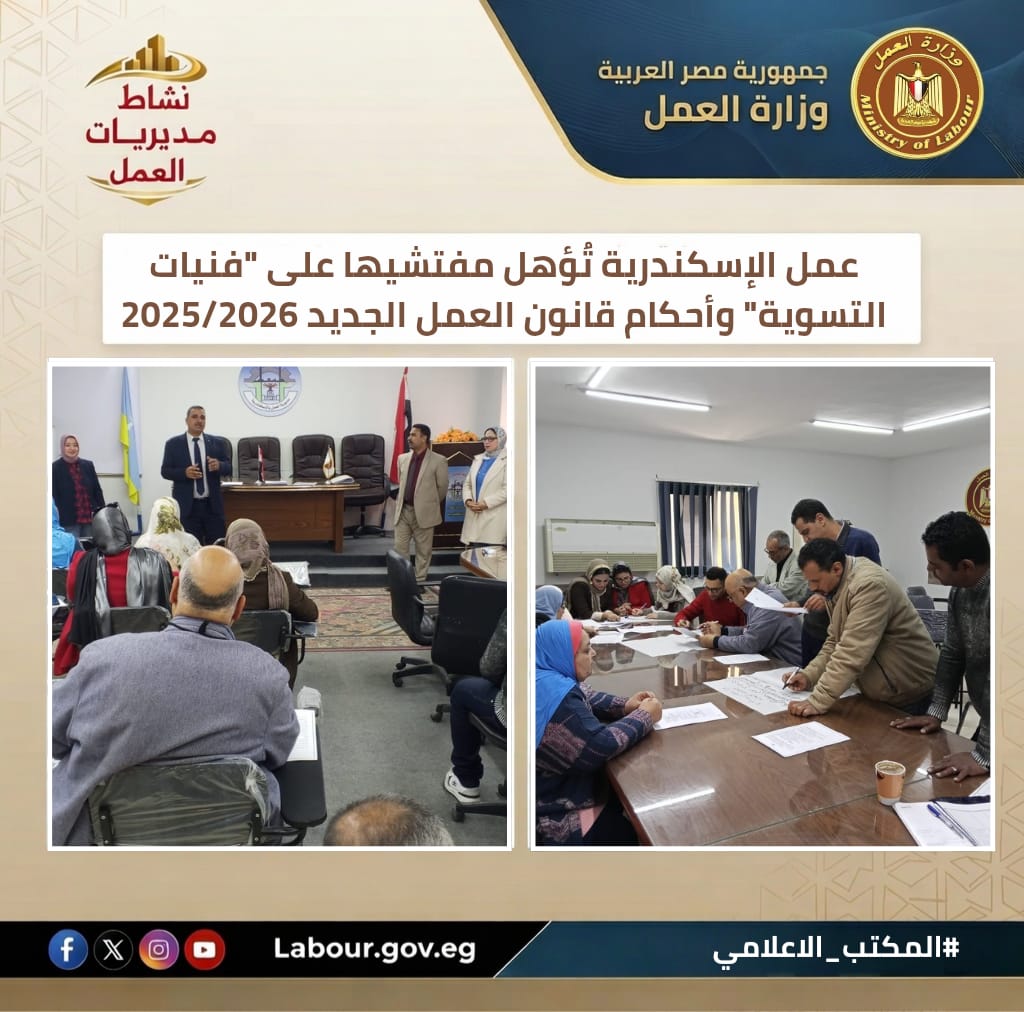 9-"عمل الإسكندرية" تُؤهل مفتشيها على "فنيات التسوية" وأحكام قانون العمل الجديد ..