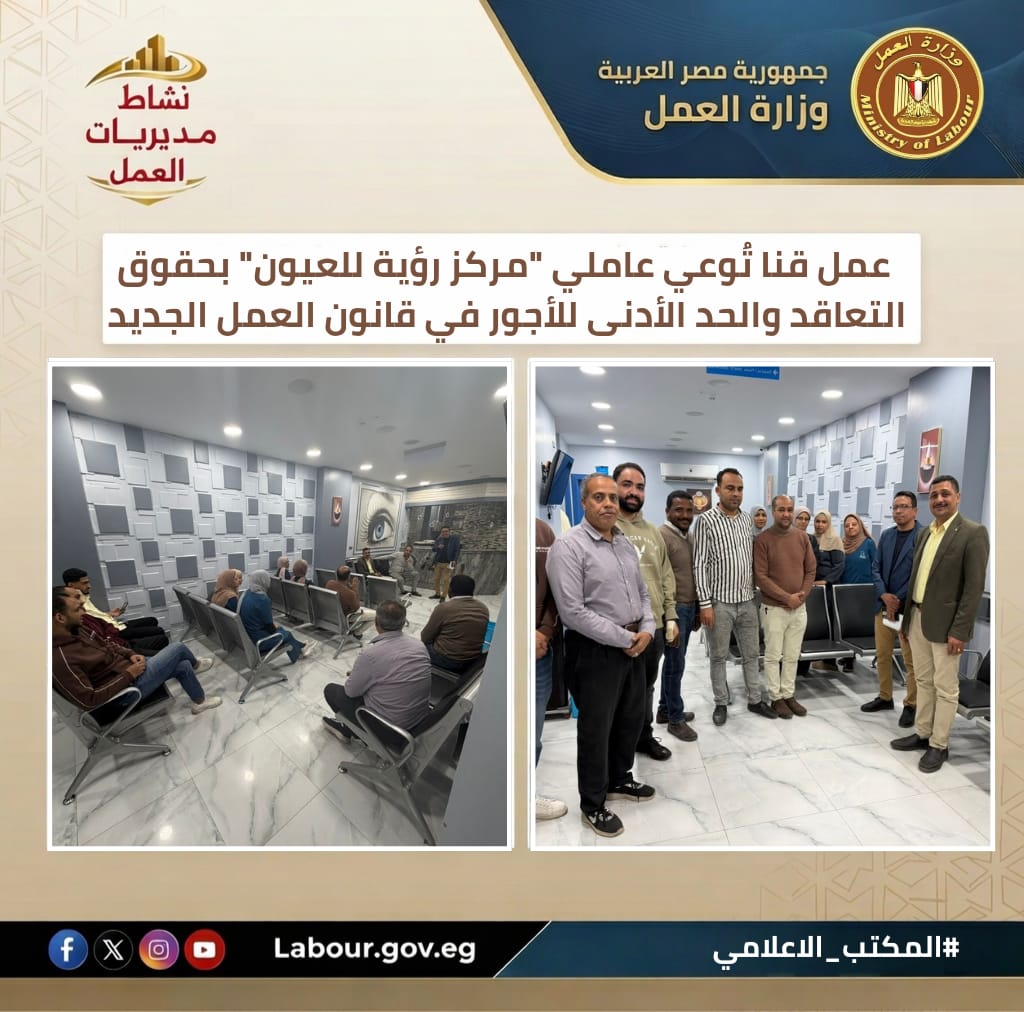 15- "عمل قنا" تُوعي عمال "مركز رؤية للعيون" بعقود العمل.. والحد الأدنى للأجور في قانون العمل الجديد