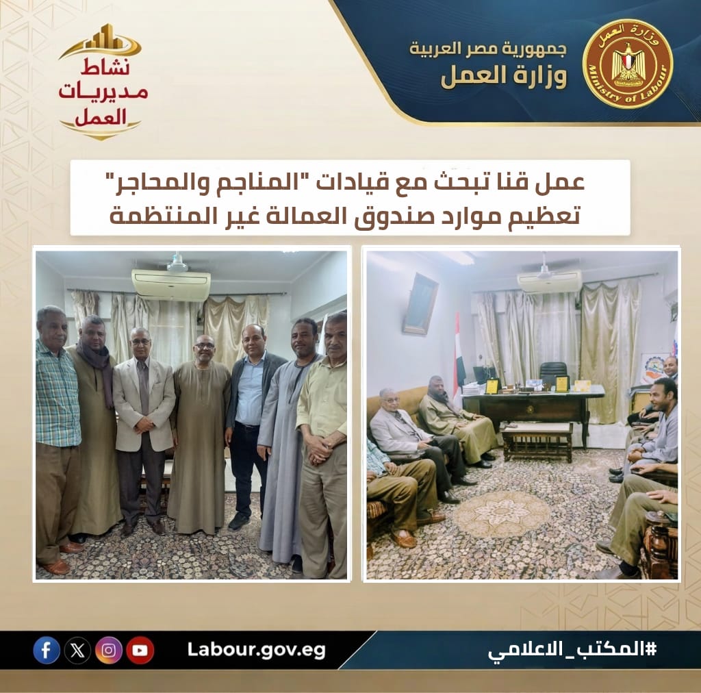 5-"عمل قنا " تبحث مع قيادات "المناجم والمحاجر" تعظيم موارد صندوق العمالة غير المنتظمة