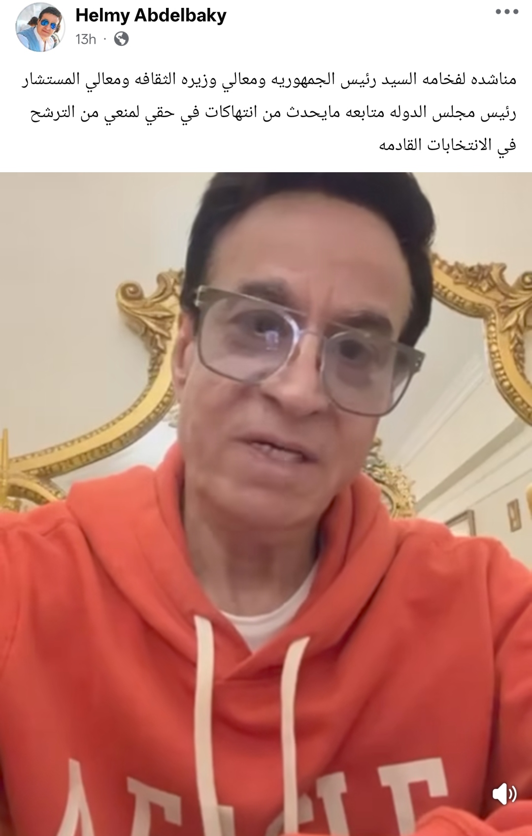 تابع: بعد كل اللي أنا بقوله ده يا جماعة، أنا مطلوب اقصائي من الانتخابات اللي جاية ولا عضو مجلس ولا نقيب ولا أي حاجة، وده في الأخر بتاع ربنا لا أنا ولا أنت ولا أي حاجة ربنا عايز يحصلي حاجة هيحصلي، ربنا عايز ينقذني هينقذني، أنا بناشد ك أجهزة الدولة أنا بتعرض لظلم وقهر بشكل غير طبيعي لكن في الأخر بقول اللي ربنا عايزه هو اللي هيكون.