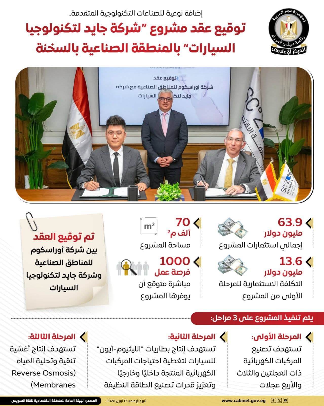 توقيع عقد شركة جايد لتكنولوجيا السيارات بالمنطقة الصناعية بالسخنة