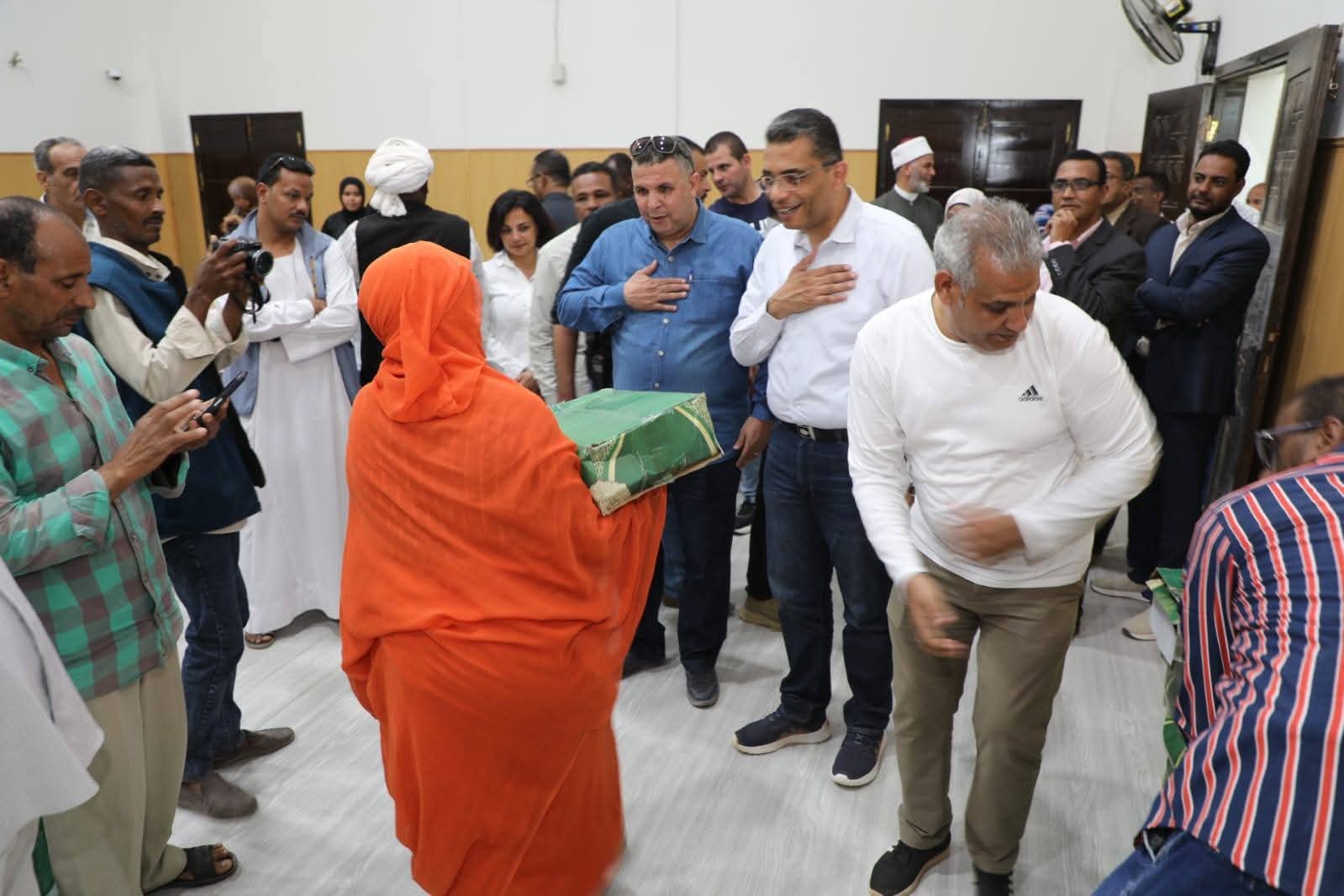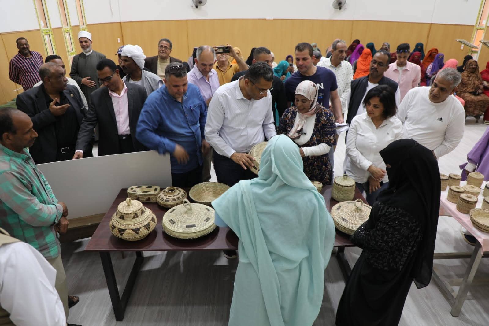 وخلال جولته بقاعة التدريب، أشاد المحافظ بإبداعات سيدات الشلاتين في المشغولات اليدوية التراثية، مؤكداً على تقديم كافة سبل الدعم والتمكين الاقتصادي لهن. وفي إطار الدور التكافلي للدولة، قام الدكتور البرقي بتسليم كراتين المساعدات والمعونات لعدد من الأسر المستحقة، مشدداً على أن رعاية المواطن وتلبية احتياجاته الأساسية تقع على رأس أولويات العمل التنفيذي بالمحافظة.