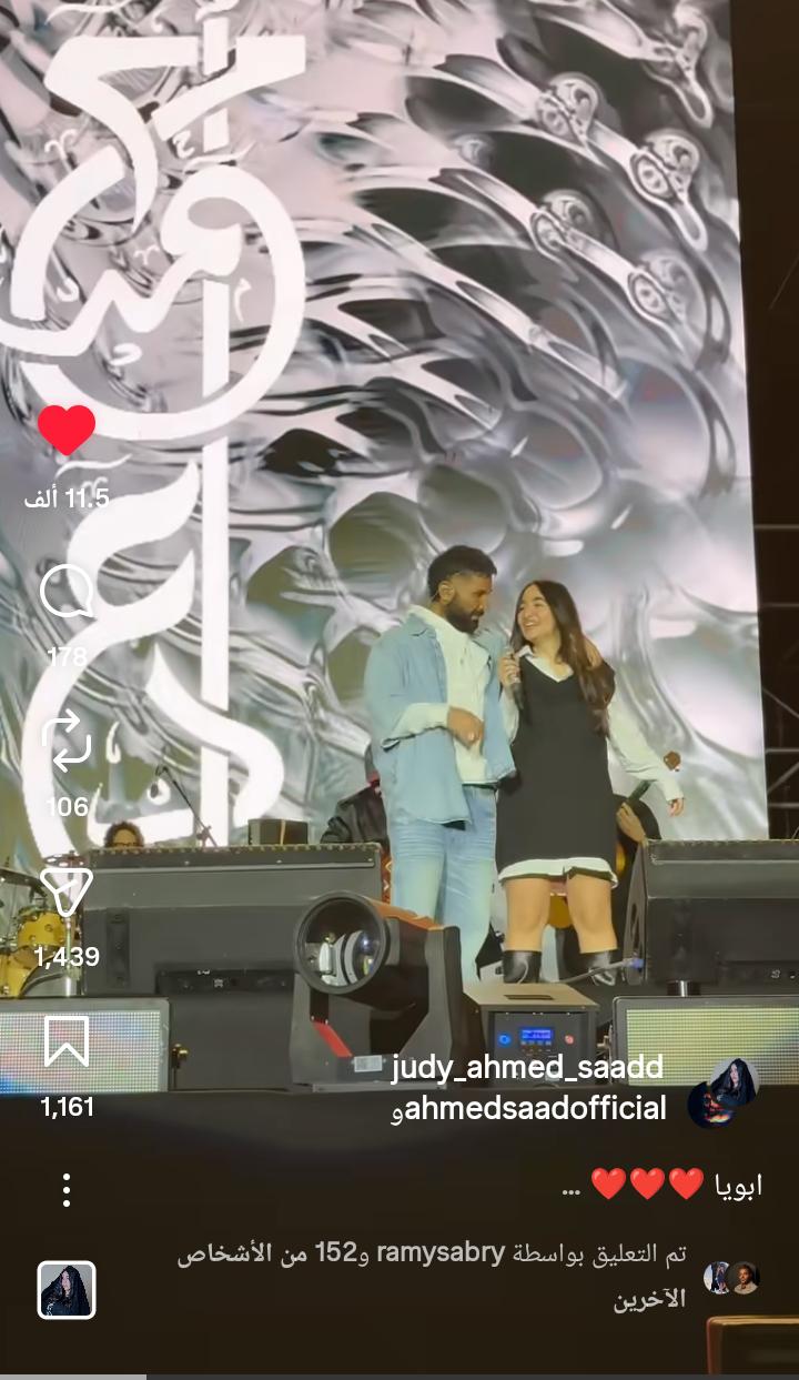 ونشر أحمد سعد مقطع فيديو من الحفل عبر حسابه على "إنستجرام"، كشف من خلاله أنه كان يرفض في البداية فكرة دخول ابنته مجال الغناء، لكنه قرر كسر هذا الحاجز خلال الحفل ومشاركة الجمهور هذه اللحظة الخاصة.