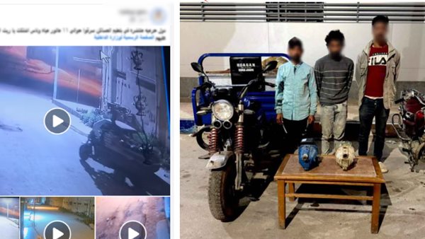 تمكنت الاجهزة الامنية بوزارة الداخلية ، من كشف ملابسات منشور مدعوم بمقطعى فيديو تم تداوله بمواقع التواصل الإجتماعى تضمن قيام 3 أشخاص يستقلون مركبة "تروسيكل، دراجة نارية" بسرقة مواتير المياه بكفرالشيخ.