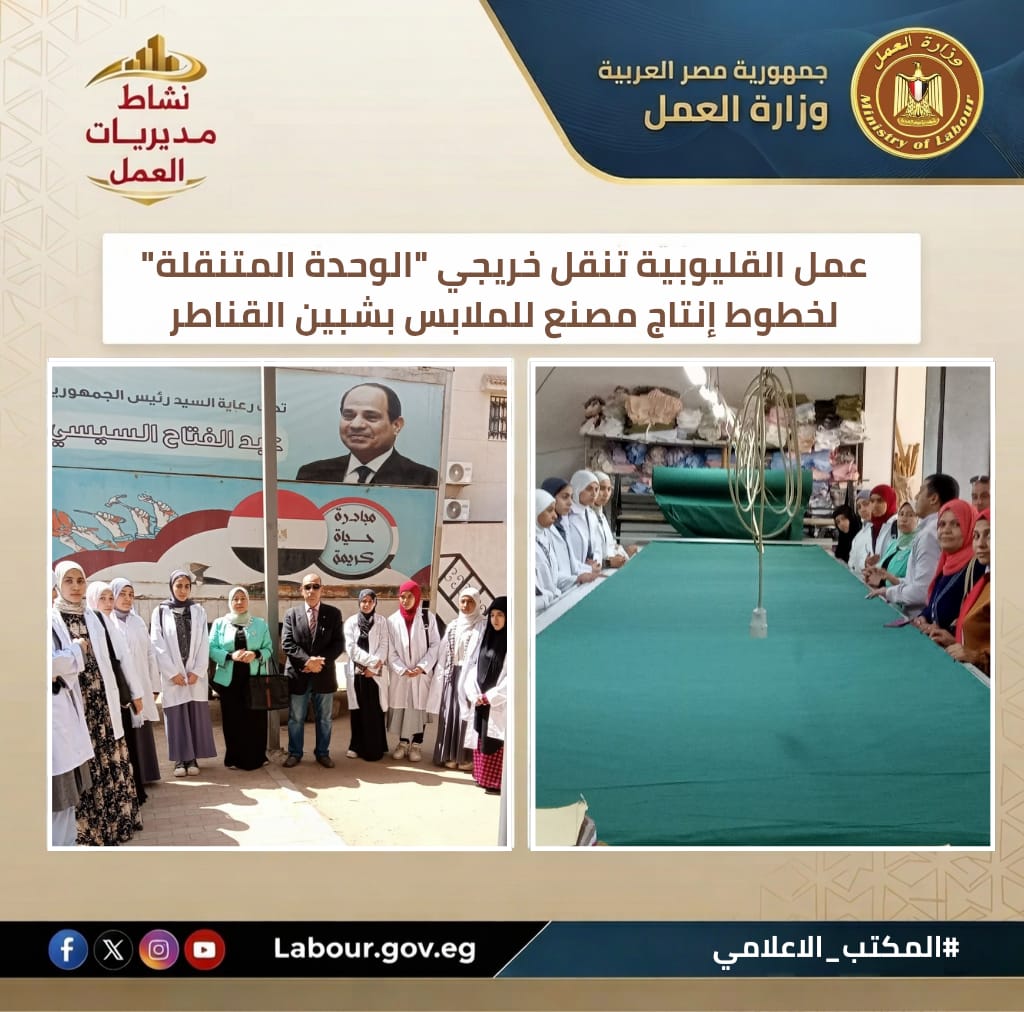 14. تشغيل خريجي "الوحدة المتنقلة" بخطوط إنتاج مصنع ملابس بالقليوبية