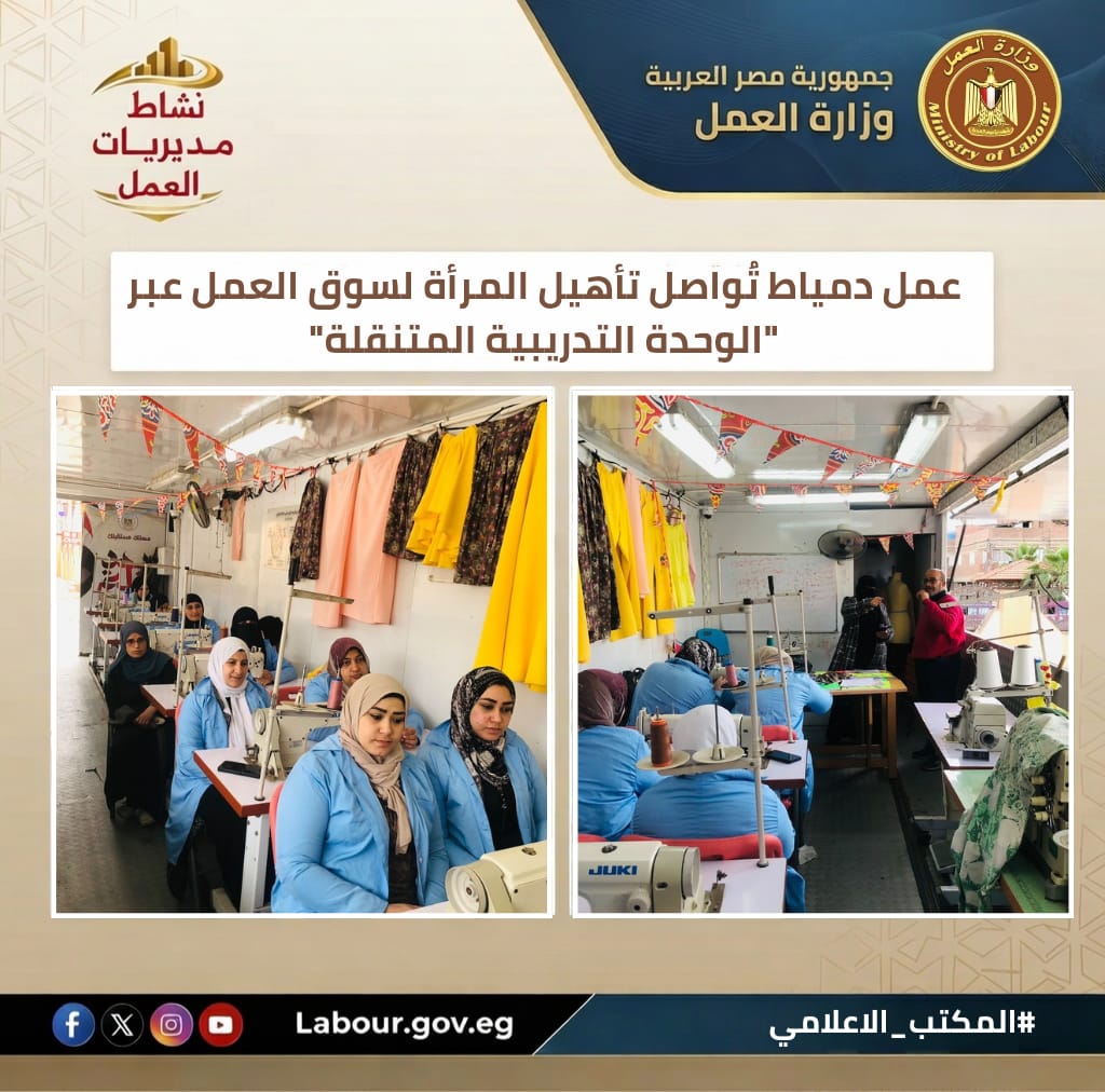 تنفيذًا لتوجيهات وزير العمل حسن رداد، تابعت مديرية عمل دمياط، بقيادة فتحي التلاوي، دورة "التفصيل والخياطة" بقرية ميت أبو غالب. وتستهدف الدورة تمكين المرأة اقتصادياً ونشر ثقافة العمل الحر، لتحويل المتدربات إلى صاحبات مشروعات صغيرة منتجة تساهم في رفع مستوى معيشة الأسرة الريفية.