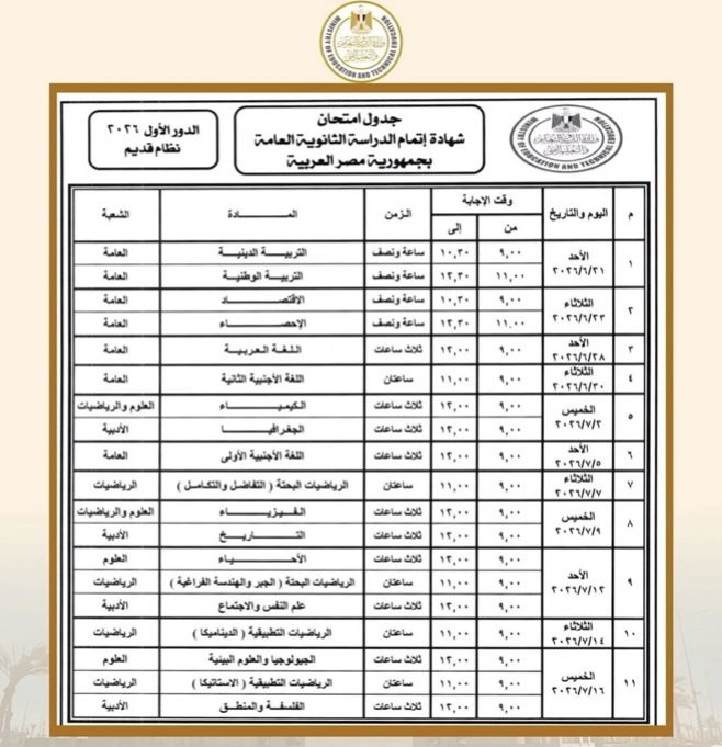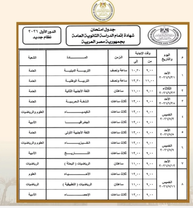وفي النهاية يمثل جدول الثانوية العامة 2026 خريطة الطريق الأساسية لكل طالب، ومن خلاله يمكن تحقيق أفضل تنظيم ممكن للوصول إلى نتائج مميزة في هذه المرحلة الحاسمة.