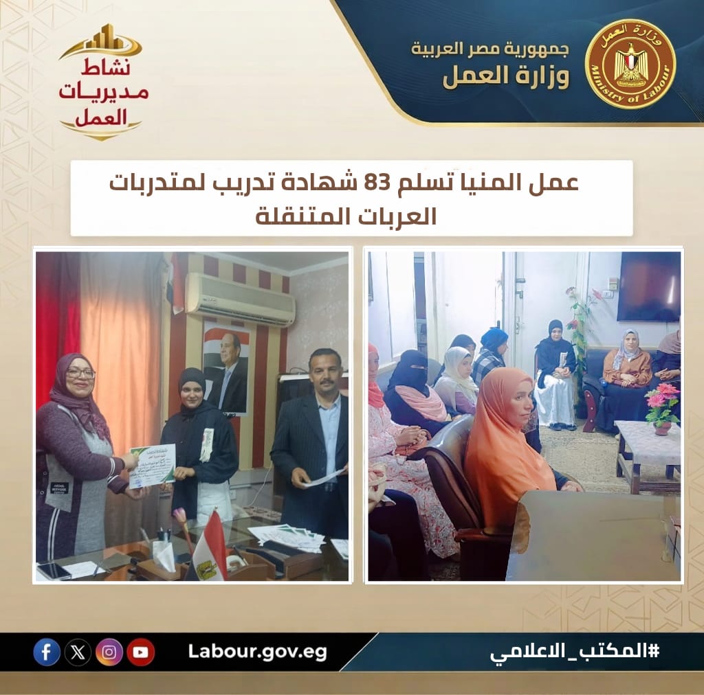 4. "عمل المنيا" تُسلم 83 شهادة تدريب لخريجات العربات المتنقلة بقرى "حياة كريمة"
