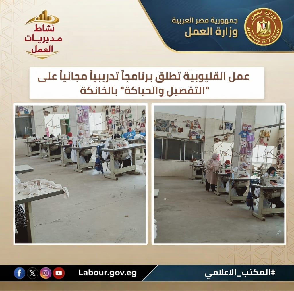 تنفيذًا لتوجيهات وزير العمل حسن رداد، بدأت مديرية عمل القليوبية، بقيادة فوزي صابر، تنفيذ دورة تدريبية لـ 15 متدربة بمركز التدريب المهني بالخانكة. وتستهدف الدورة تأهيل الفتيات فنياً بنظام الساعات المعتمدة، لتمكينهن من الحصول على فرص عمل لائقة أو بدء مشروعات صغيرة مستدامة.
