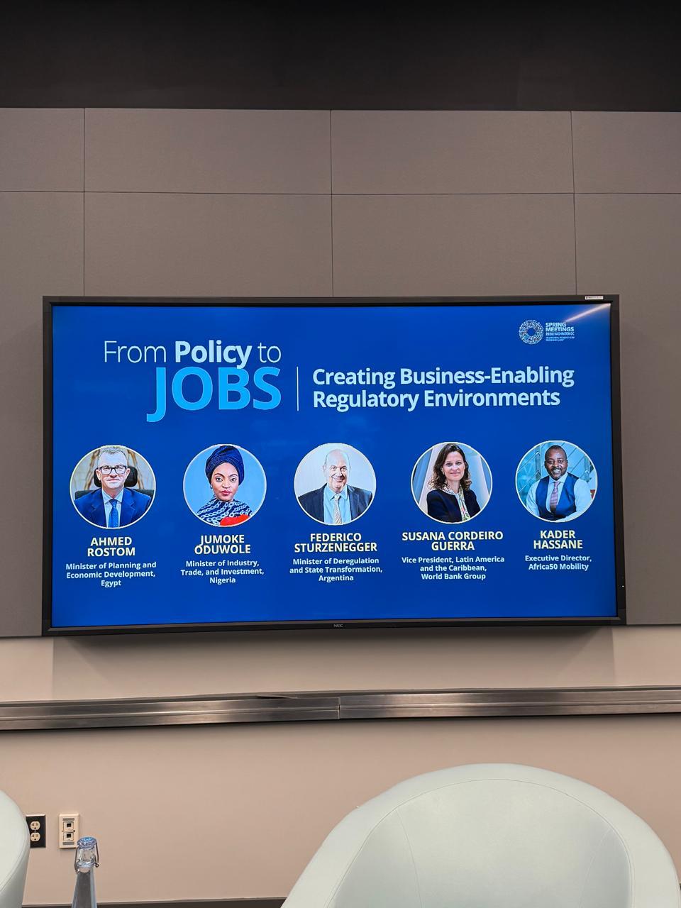 وشهدت الجلسة حضور نخبة من صناع السياسات، وقادة القطاع العام، ورواد الأعمال، بمشاركة السيد/ باسكال دونوهو، المدير المنتدب للعمليات بمجموعة البنك الدولي، السيد/ جوموكي أودوولي، وزيرة الصناعة والتجارة والاستثمار بنيجيريا؛ والسيد/ فيديريكو ستورزينجر، وزير التحول الرقمي بالأرجنتين؛ والسيدة/ سوزانا كورديرو غيرا، نائبة رئيس مجموعة البنك الدولي لأمريكا اللاتينية ومنطقة الكاريبي؛ والسيد/ قادر حسان، المدير التنفيذي لمنصة موبيليتي التابعة لمؤسسة Africa50.