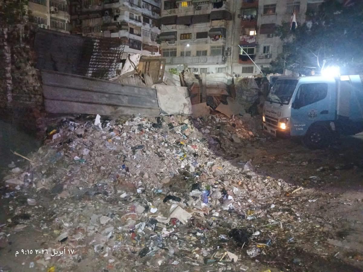 استمرار أعمال الوردية المسائية لرفع الأتربة وتجريف المخلفات بنطاق الحي