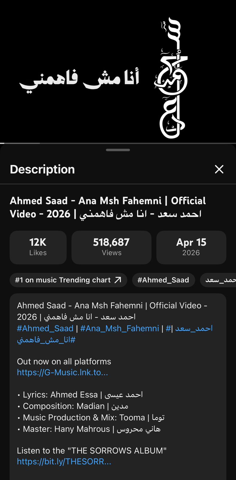 كما حرص مدين على تقديم أغنية درامية مميزة، حيث يعتبرها من أقرب الأغاني لقلبه في مشواره، ومن أهم المحطات التي جمعته بأحمد سعد أيضًا، وعكفا على صناعتها بكل حب وإتقان.