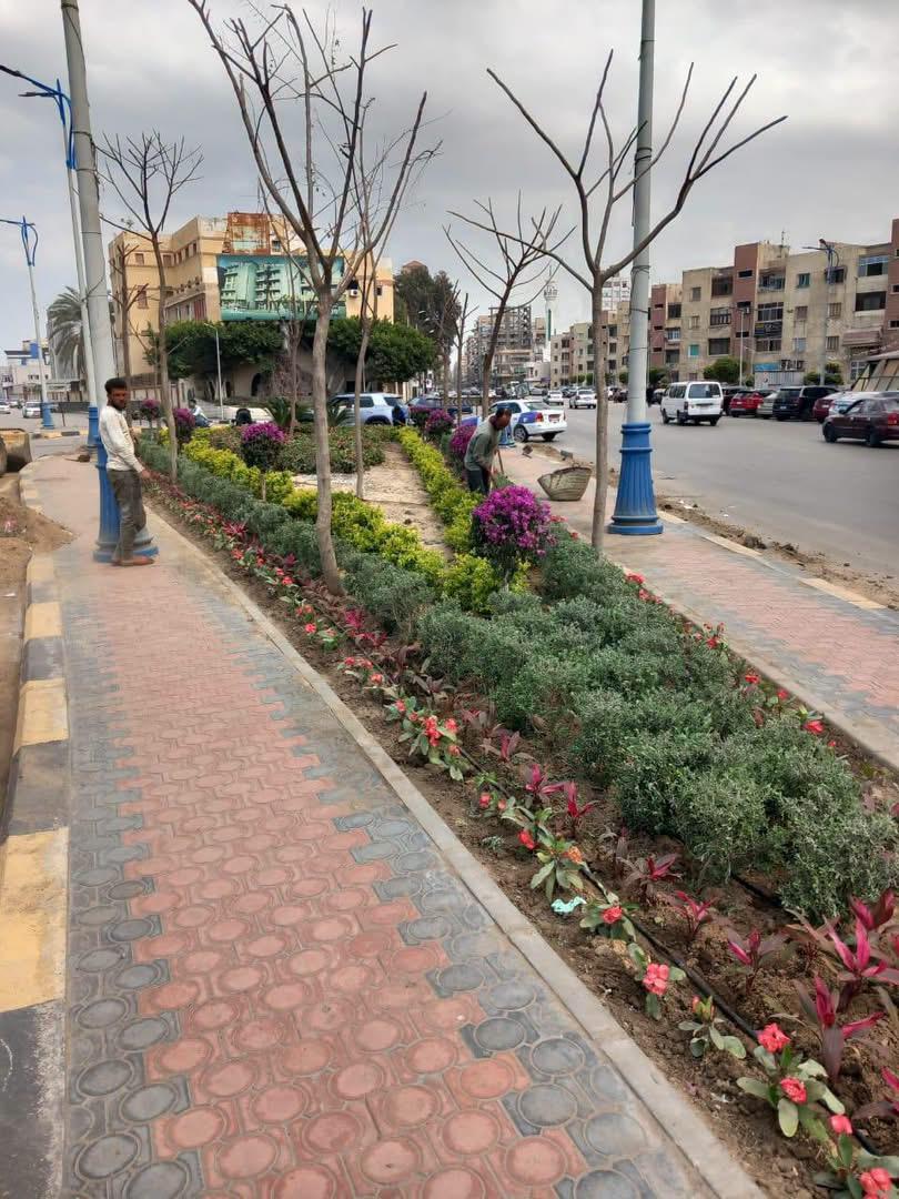 متابعة أعمال النظافة بطريق اللواء أحمد عبد الله وصيانة المسطحات الخضراء