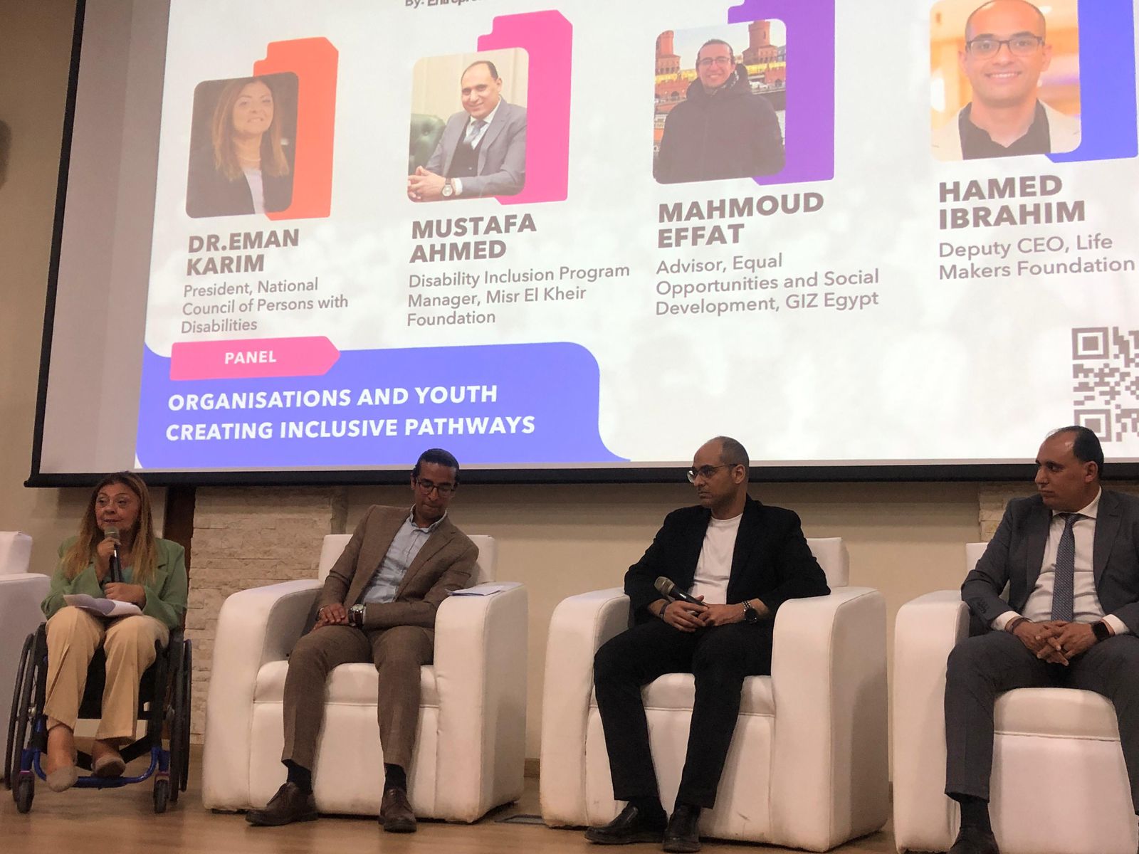 جاء ذلك خلال مشاركتها في جلسة نقاشية عن "المؤسسات والشباب وصناعة مسارات دامجة" والتي أدارها محمود عفت، مستشار تكافؤ الفرص والتنمية الاجتماعية بالوكالة الألمانية للتعاون الدولي GIZ مصر، وبمشاركة حامد إبراهيم، نائب الرئيس التنفيذي لمؤسسة صناع الحياة، ومصطفى أحمد، مدير برنامج الدمج بمؤسسة مصر الخير، وذلك ضمن فعاليات مؤسسة She Can.