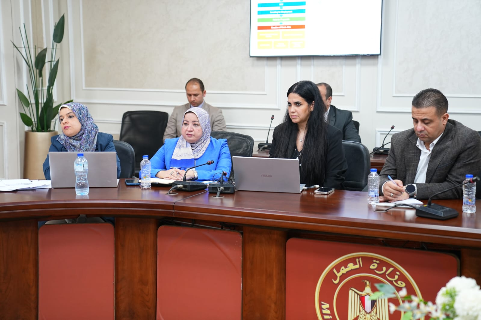 شارك في الاجتماع من جانب وزارة العمل: رشا عبد الباسط رئيس الإدارة المركزية للعلاقات الدولية، وياسمين ممدوح رئيس الإدارة المركزية للتدريب المهني، وهند السنوسي مدير عام معلومات سوق العمل، وياسر الشربيني مدير عام الإدارة العامة لفض منازعات العمل الجماعية ،وهبة أحمد مدير عام الإدارة العامة للتشغيل .. ووائل عبد الصبور مدير عام الإدارة العامة لشؤون مراكز التدريب، ومصطفى صلاح الباحث بالإدارة العامة للتعاون التنموي.