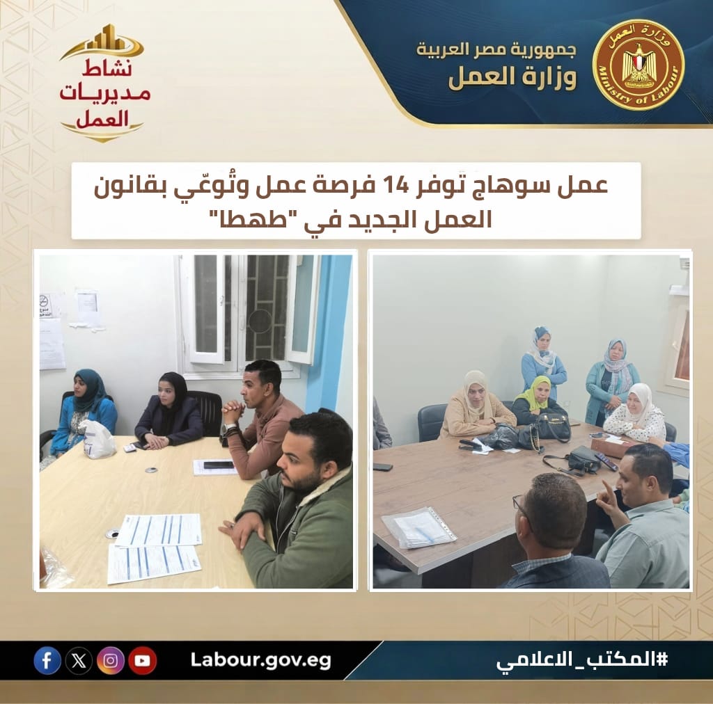 14. توفير 14 فرصة عمل وشرح قانون العمل الجديد بمدينة طهطا