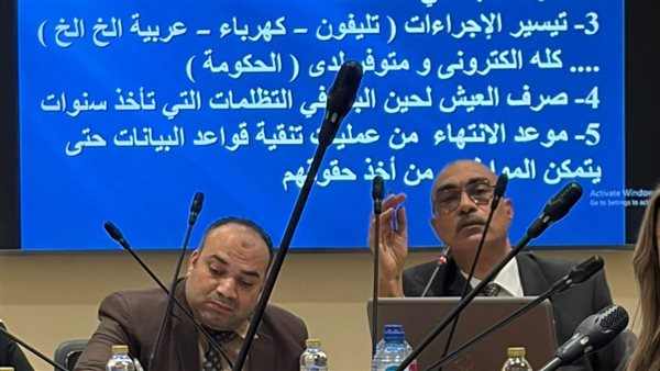 5- سرعة الانتهاء من عمليات تنقية قواعد البيانات حتى يتمكن المواطنين من أخذ حقوقهم ، و تحديد برنامج زمنى للانتهاء من ذلك والرد على الطلبات .