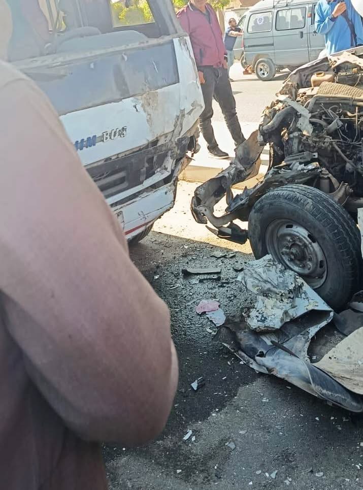إصابة 5 أشخاص في حادث تصادم ميني باص مع سيارة ربع نقل في القليوبية